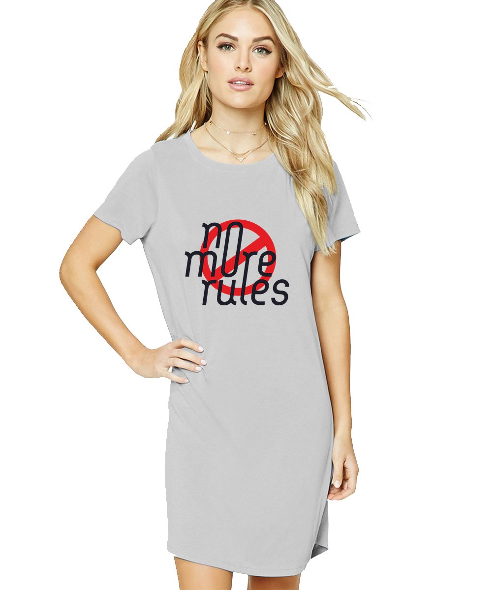 Caseria Women's Cotton Biowash Graphic Printed T-Shirt Dress with side pockets - No More Rules