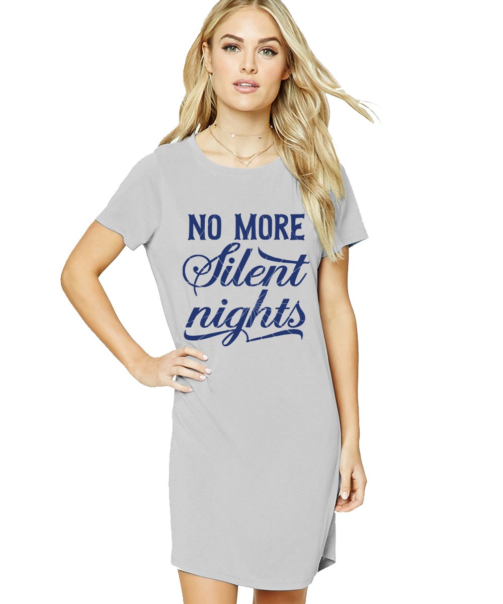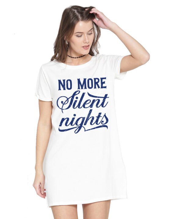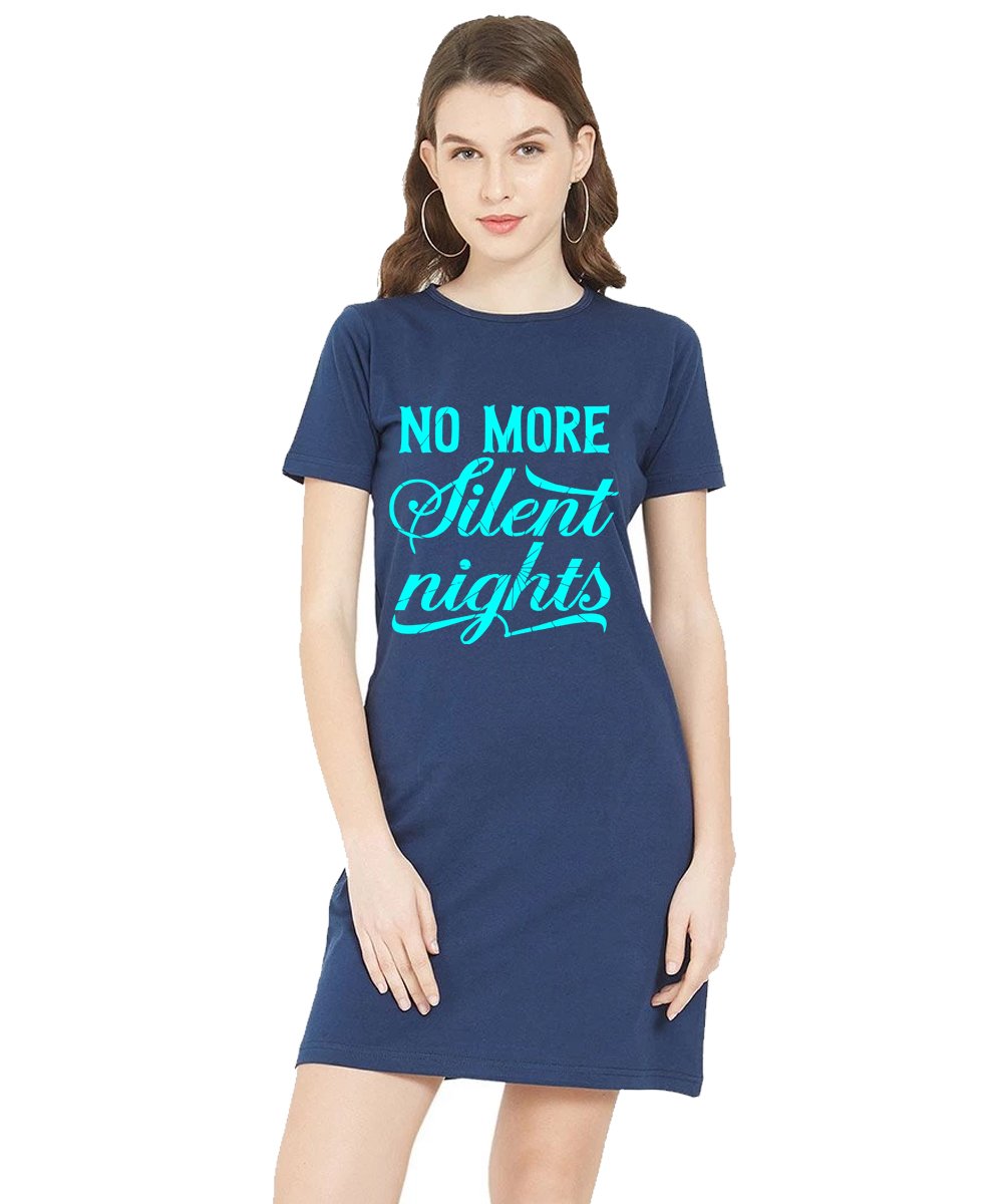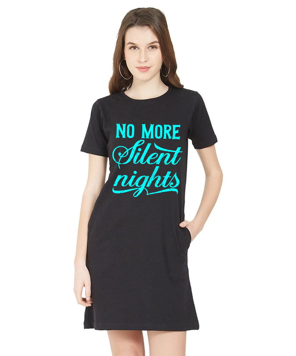 Caseria Women's Cotton Biowash Graphic Printed T-Shirt Dress with side pockets - No More Silent Nights