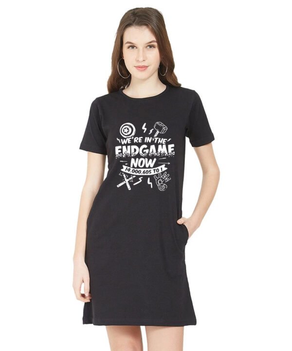 Caseria Women's Cotton Biowash Graphic Printed T-Shirt Dress with side pockets - Now 14000605 To 1