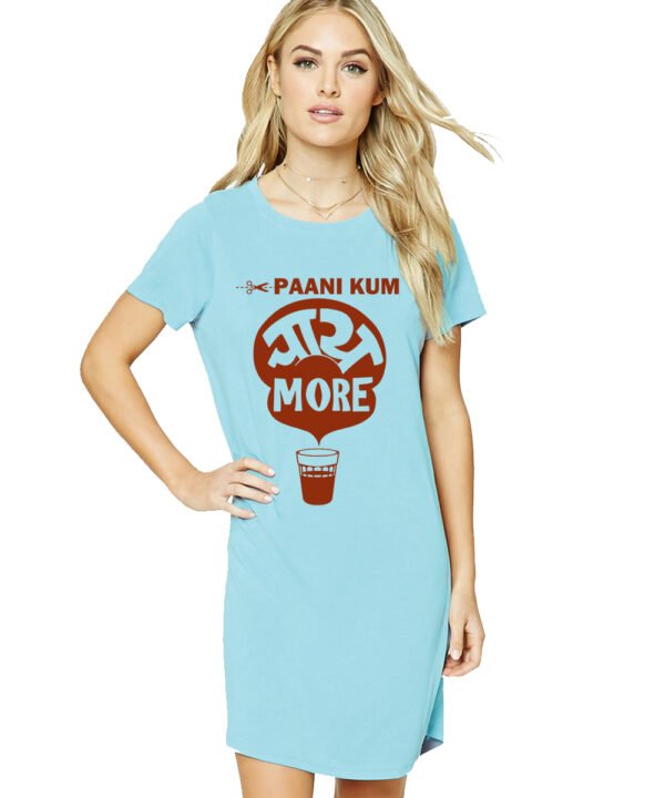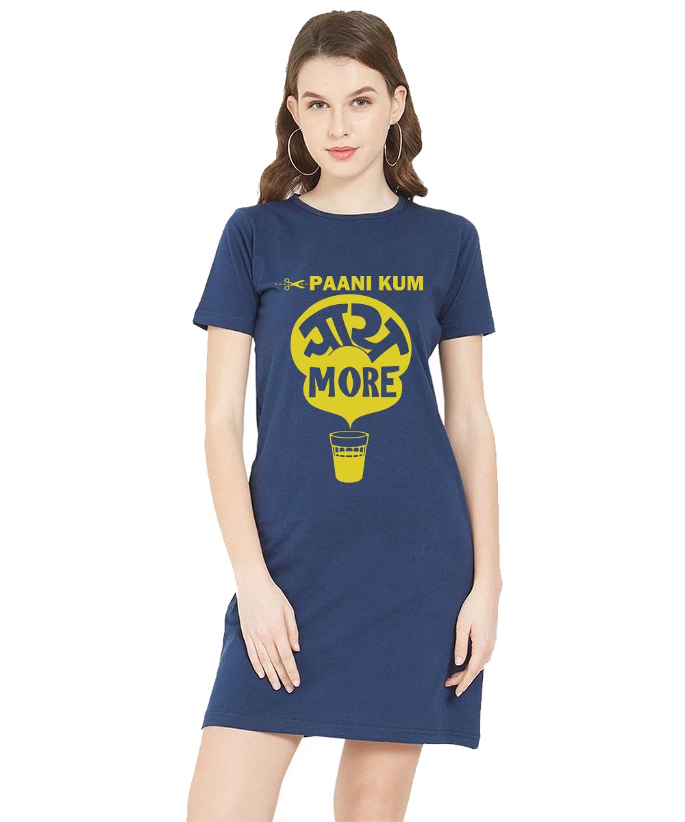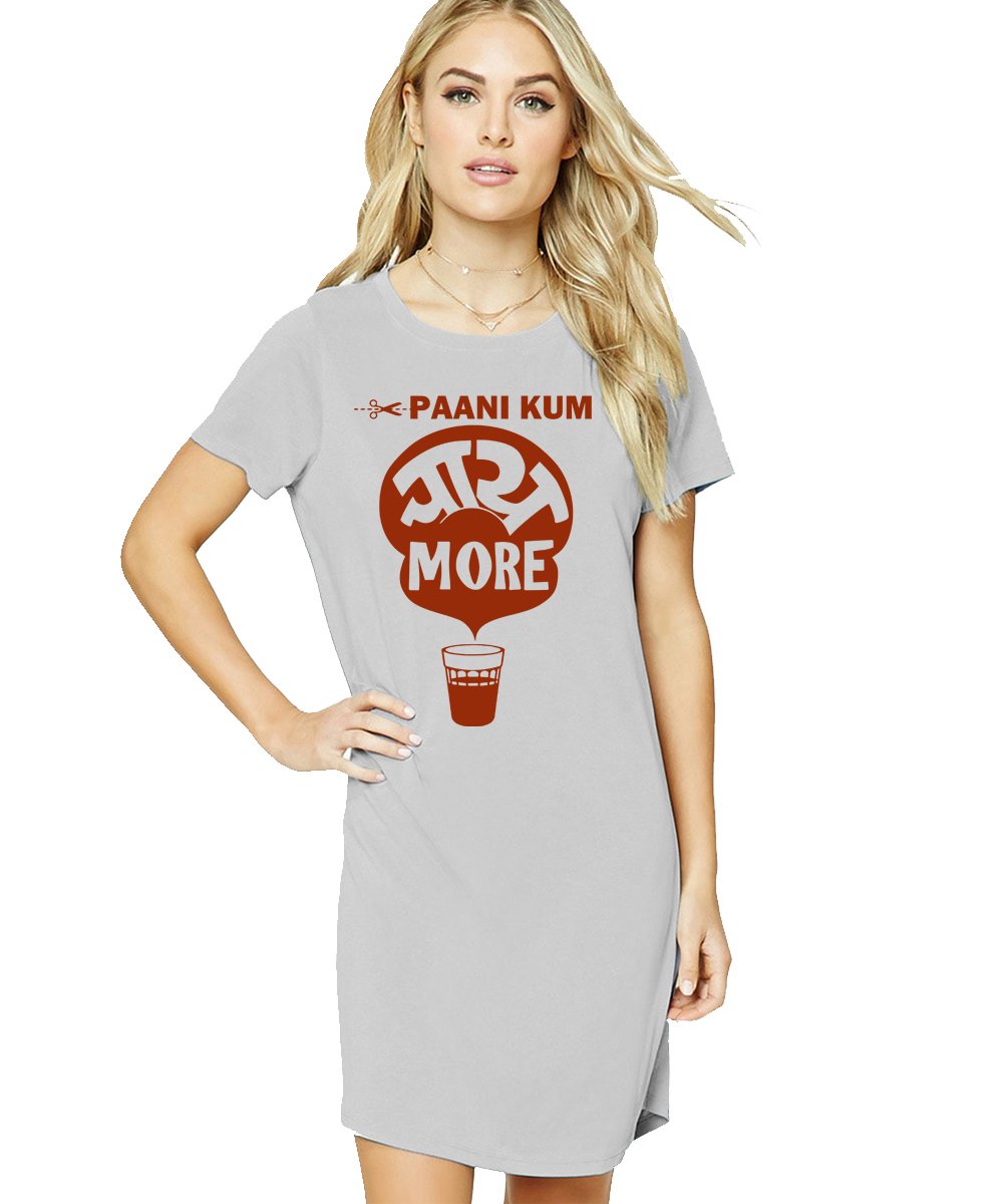 Caseria Women's Cotton Biowash Graphic Printed T-Shirt Dress with side pockets - Paani Kum Chai More