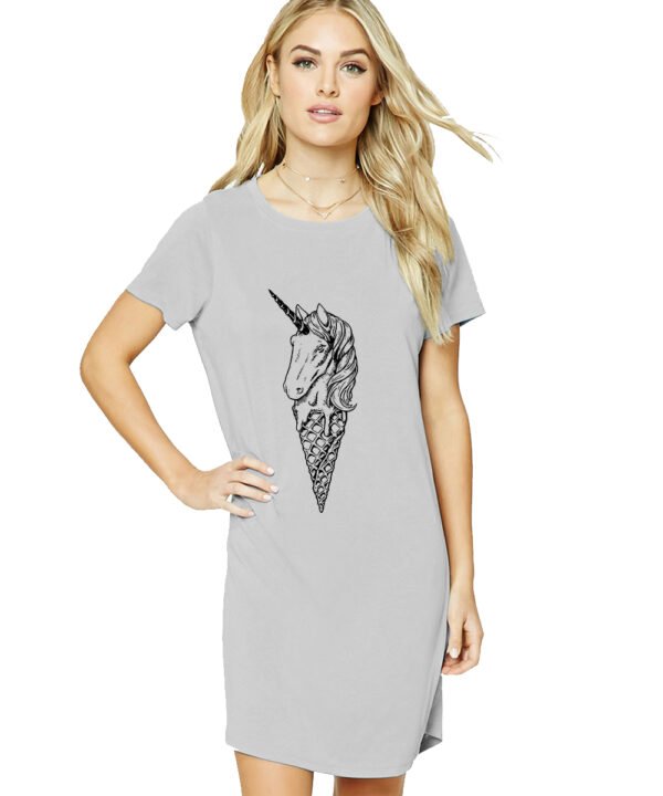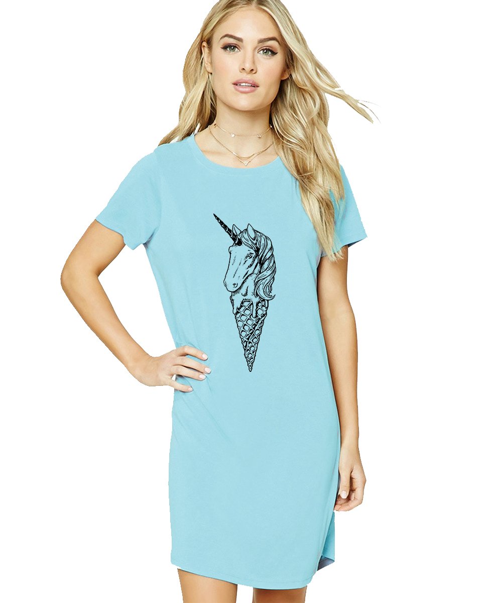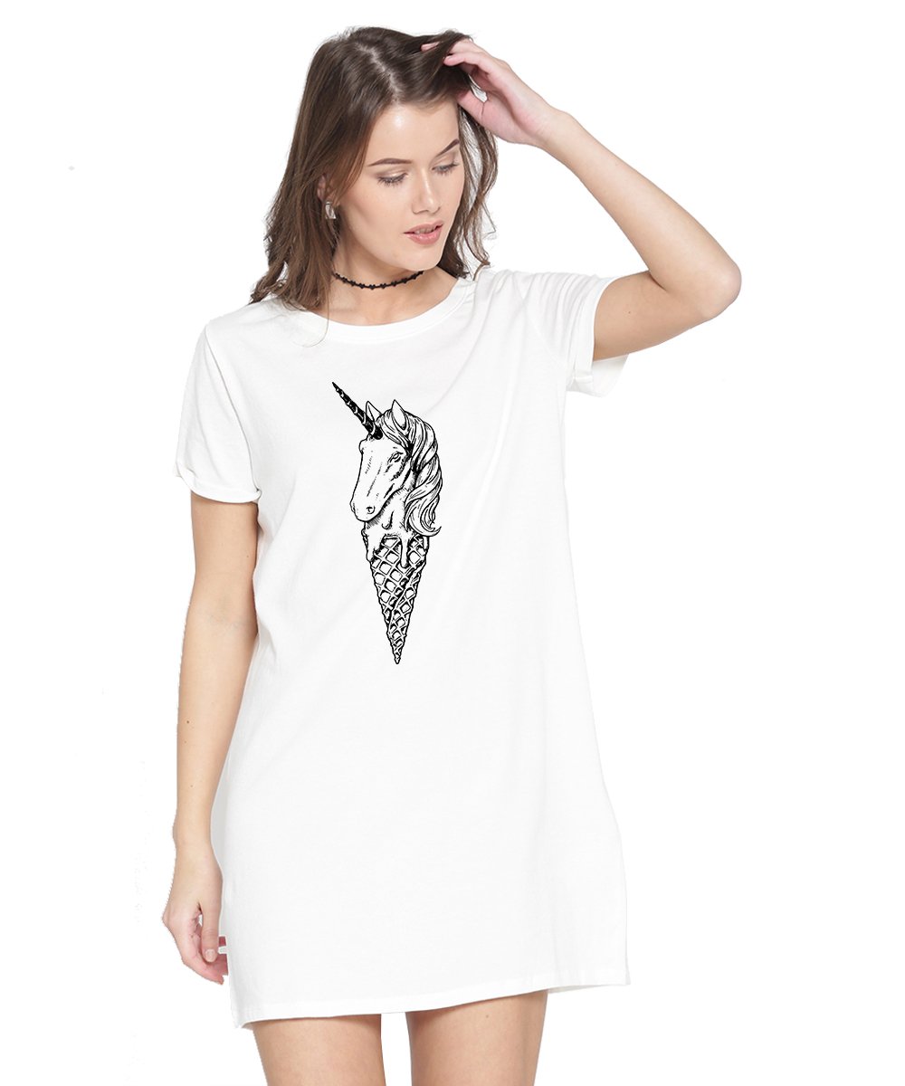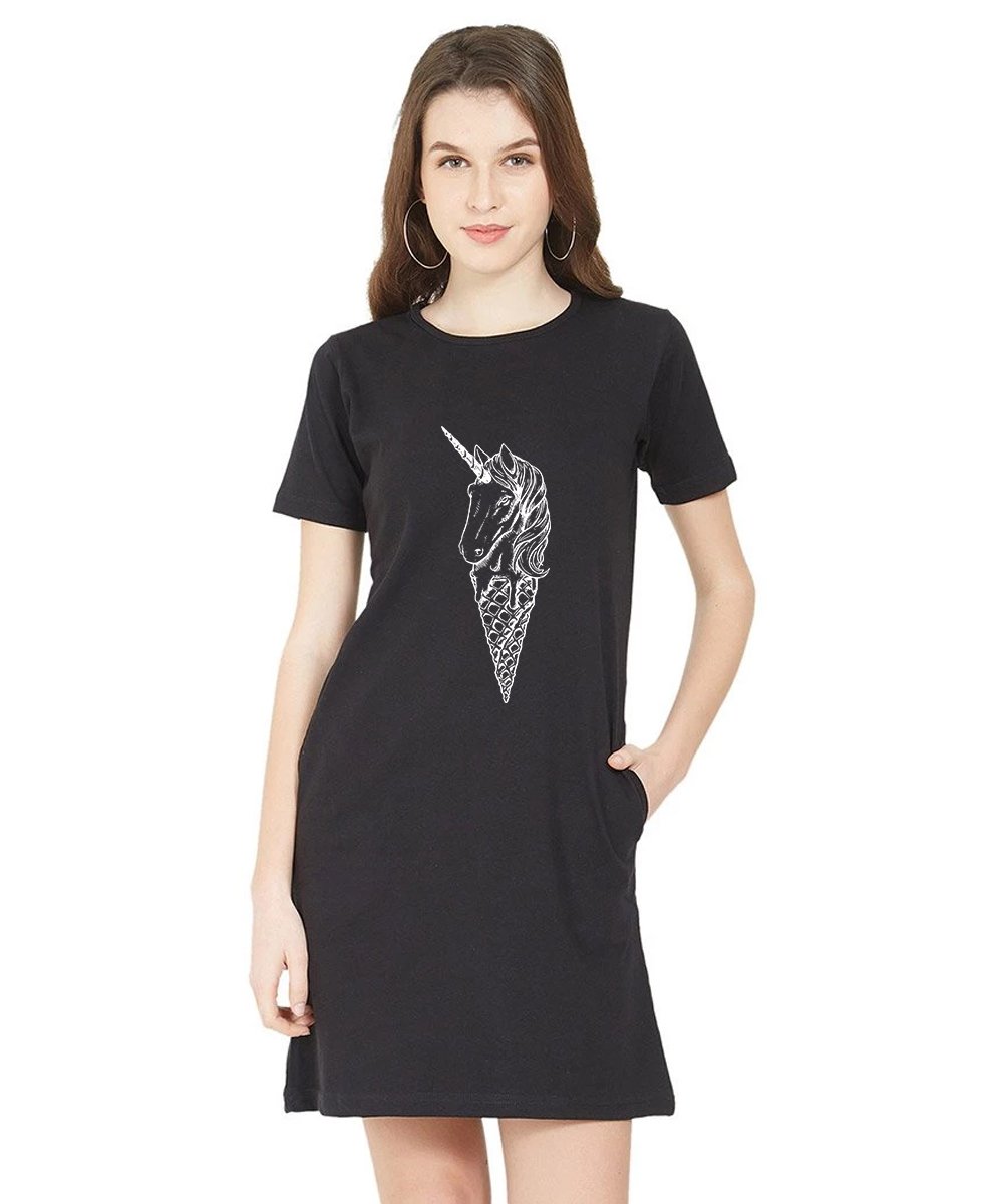 Caseria Women's Cotton Biowash Graphic Printed T-Shirt Dress with side pockets - Pony Cone
