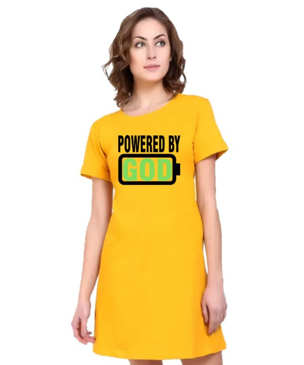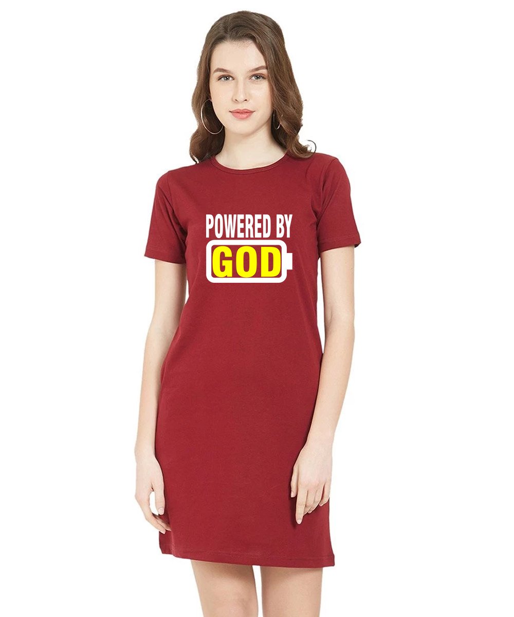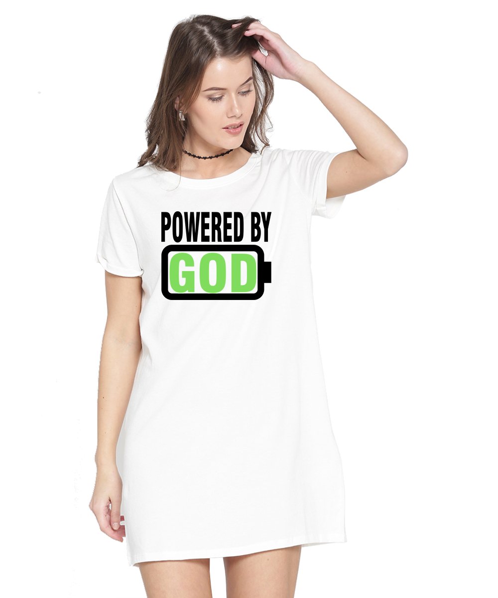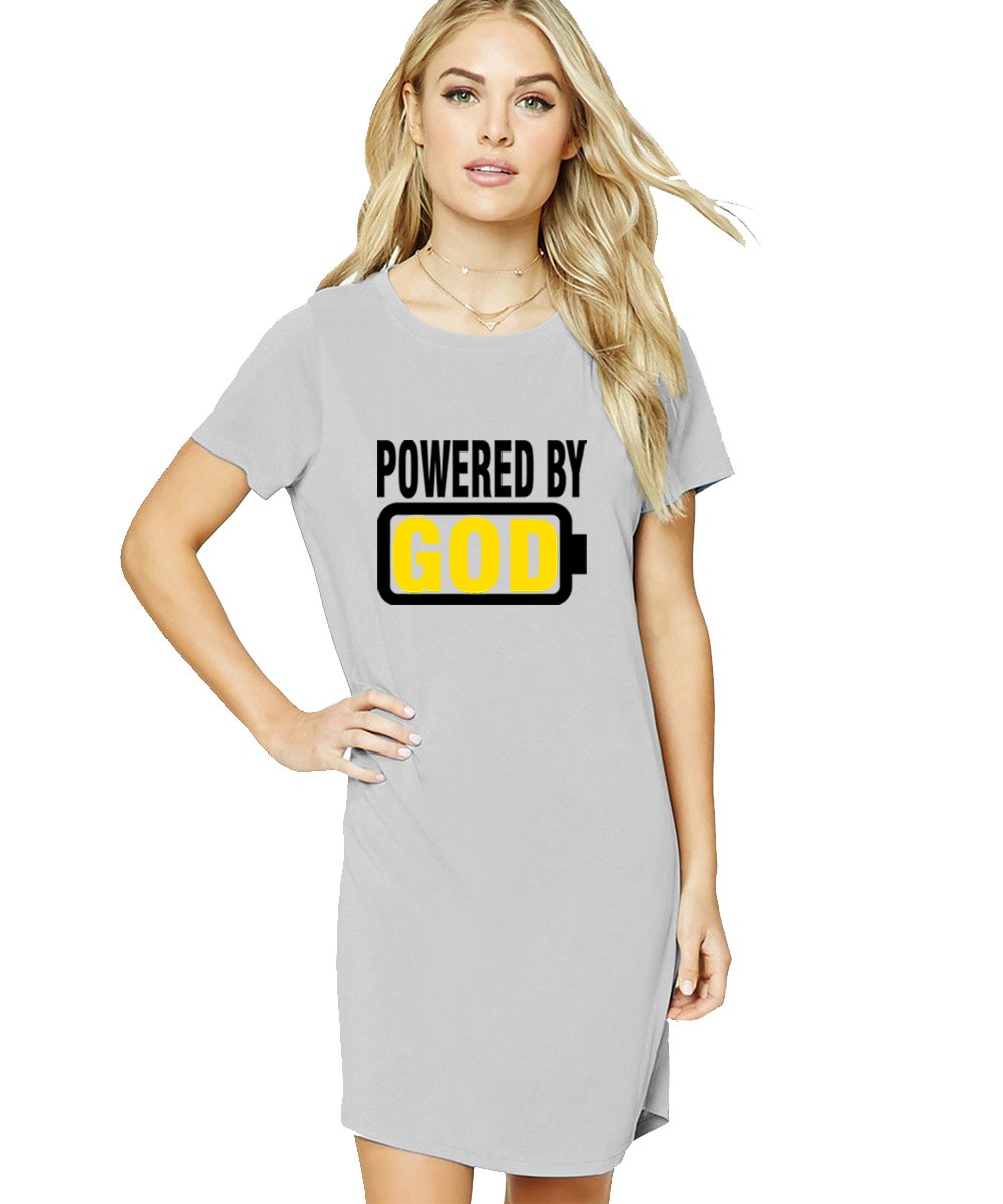 Caseria Women's Cotton Biowash Graphic Printed T-Shirt Dress with side pockets - Powered By God