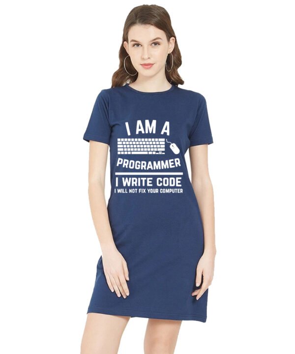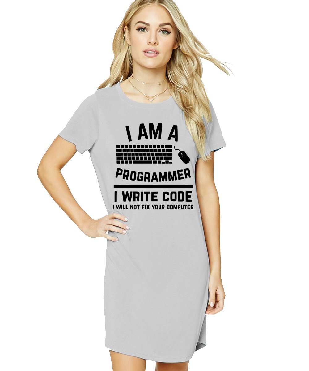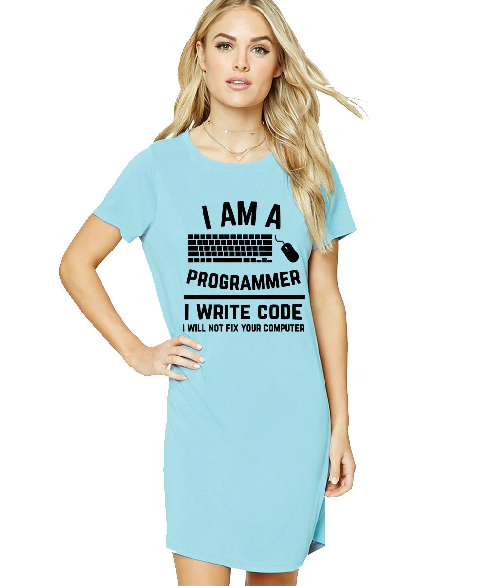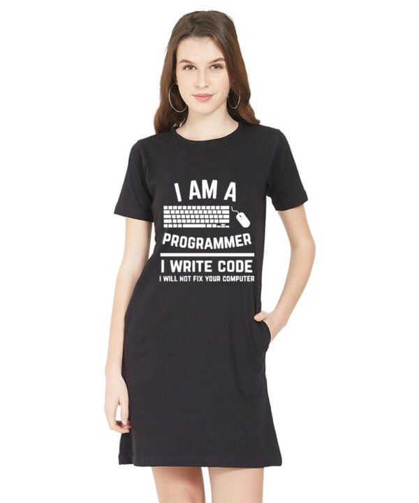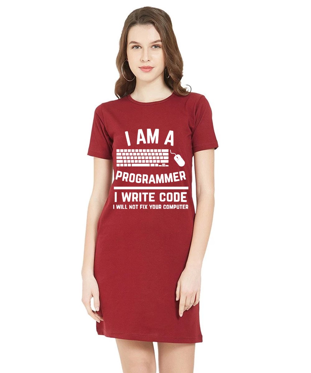 Caseria Women's Cotton Biowash Graphic Printed T-Shirt Dress with side pockets - Programmer Write Code