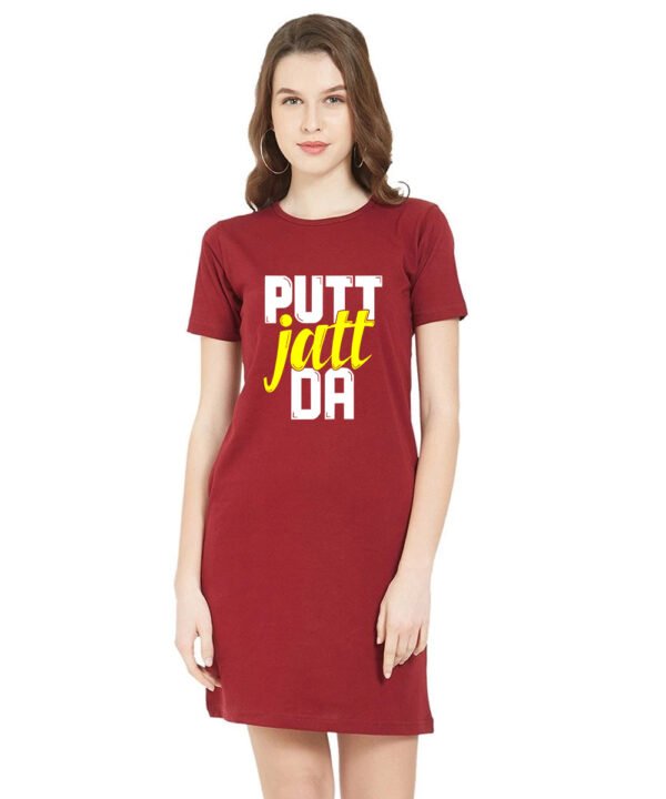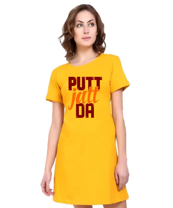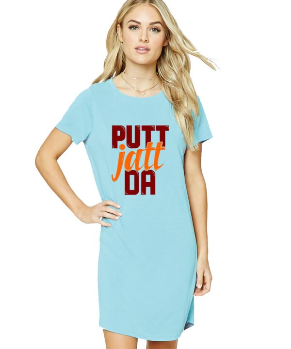 Caseria Women's Cotton Biowash Graphic Printed T-Shirt Dress with side pockets - Putt Jatt Da