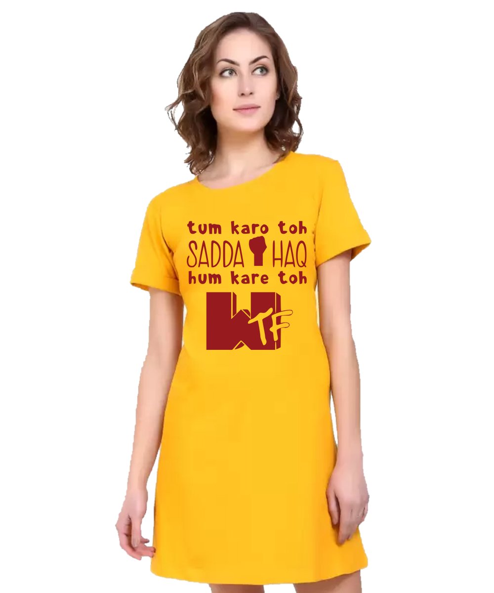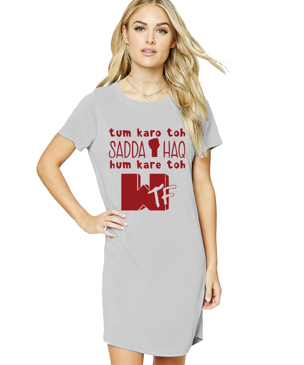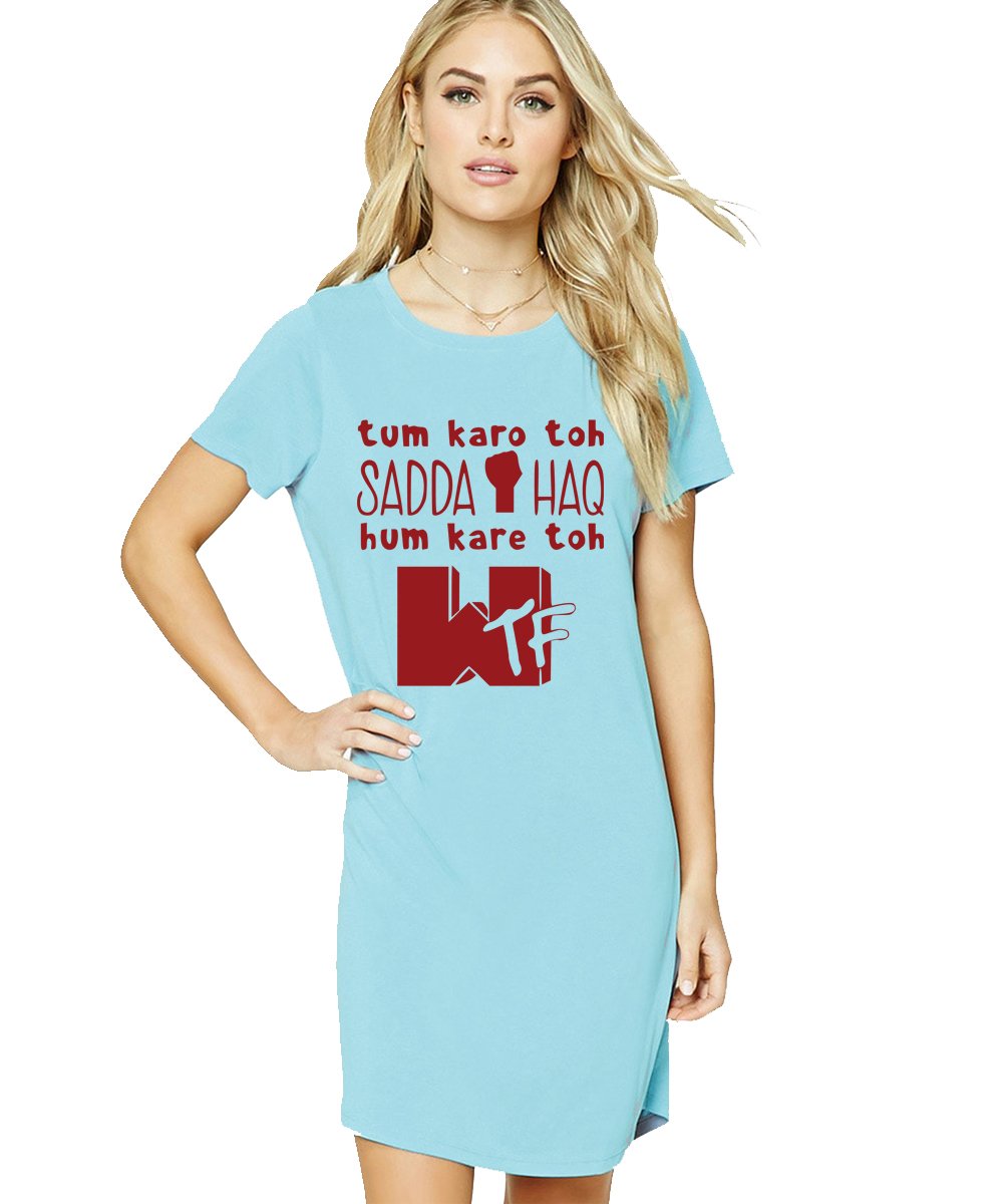 Caseria Women's Cotton Biowash Graphic Printed T-Shirt Dress with side pockets - Sadda Haq