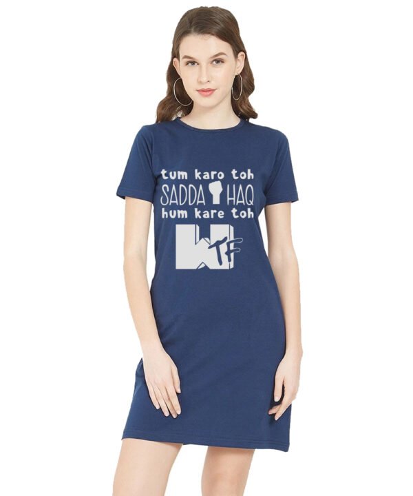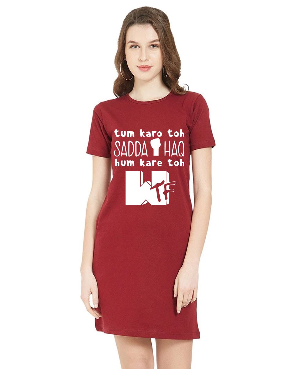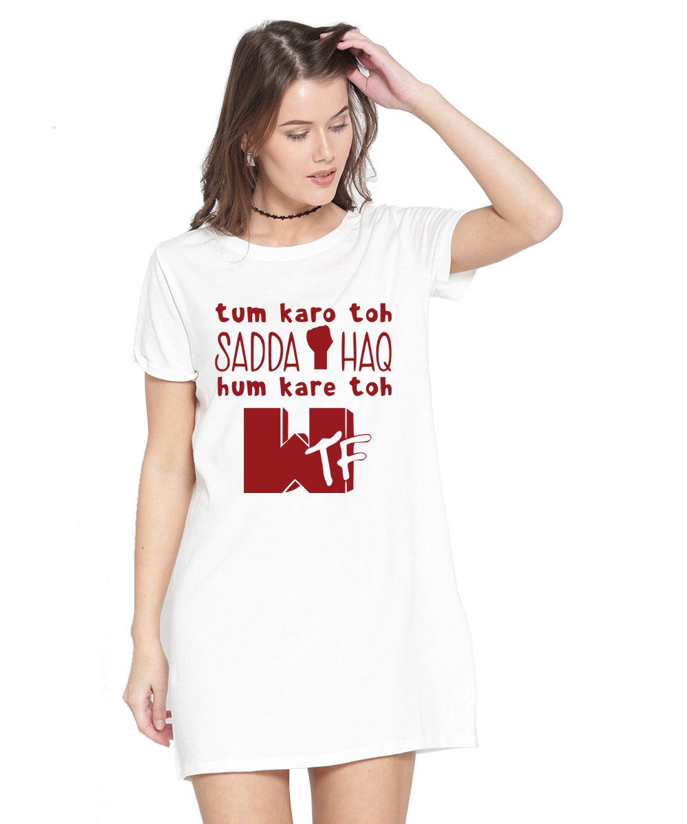 Caseria Women's Cotton Biowash Graphic Printed T-Shirt Dress with side pockets - Sadda Haq