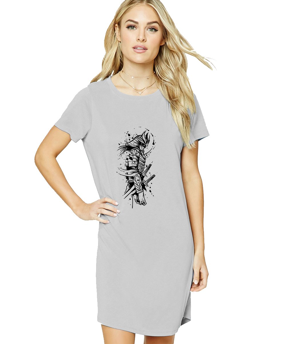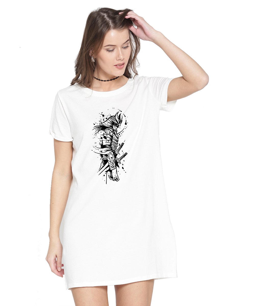 Caseria Women's Cotton Biowash Graphic Printed T-Shirt Dress with side pockets - Samurai Super Man