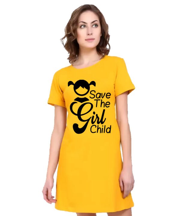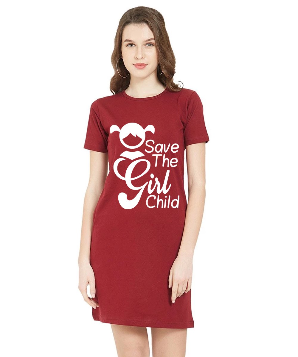 Caseria Women's Cotton Biowash Graphic Printed T-Shirt Dress with side pockets - Save The Girl Child