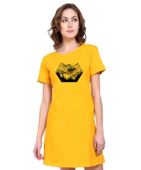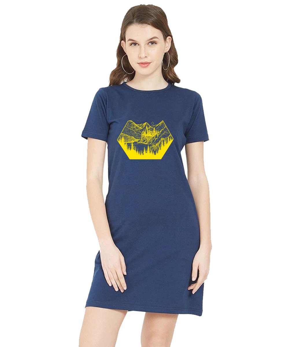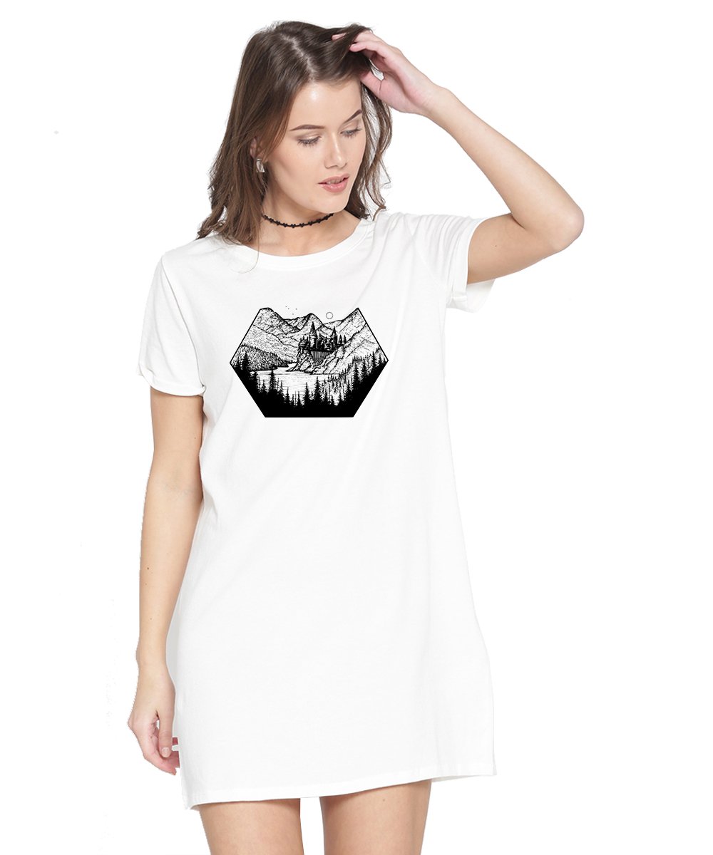 Caseria Women's Cotton Biowash Graphic Printed T-Shirt Dress with side pockets - Shape Castle