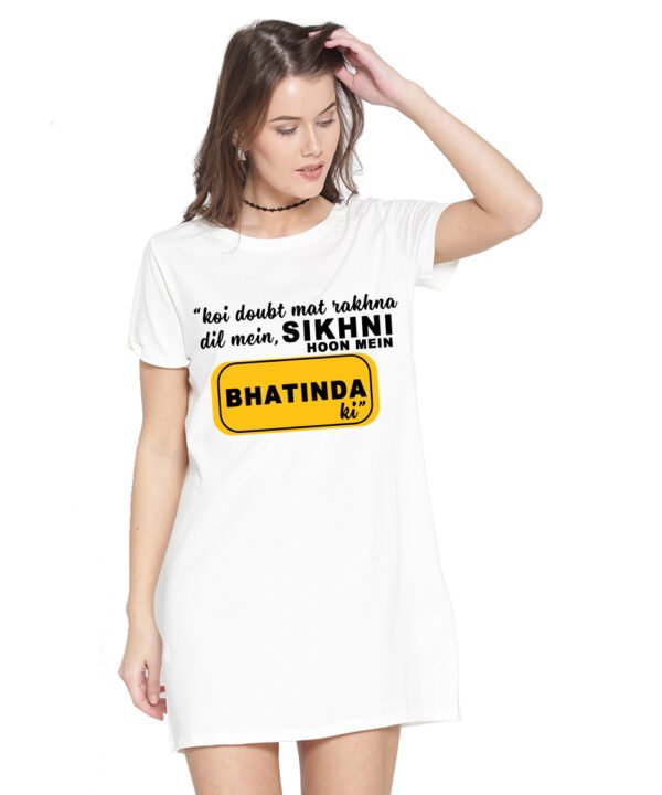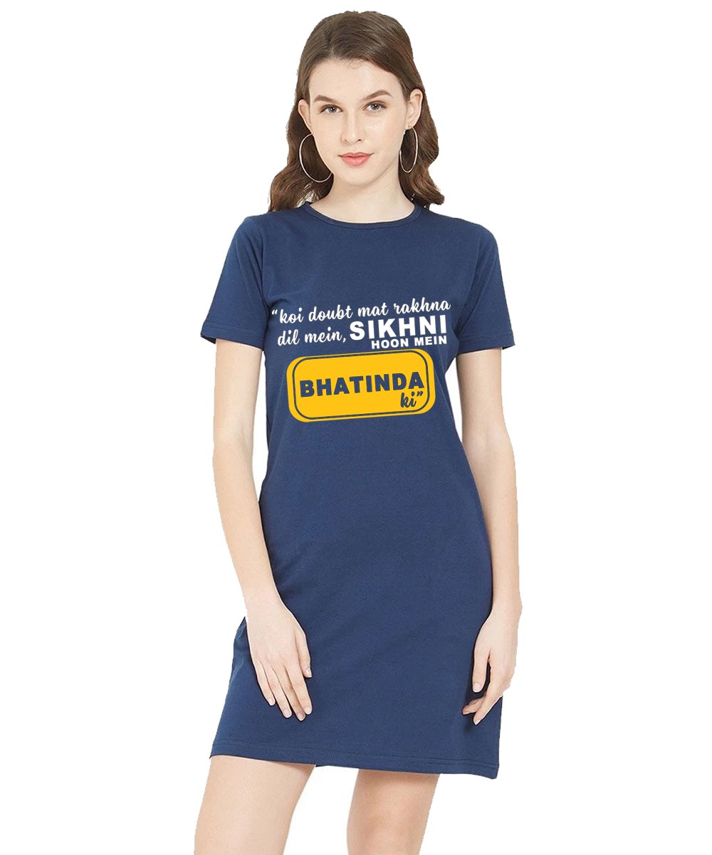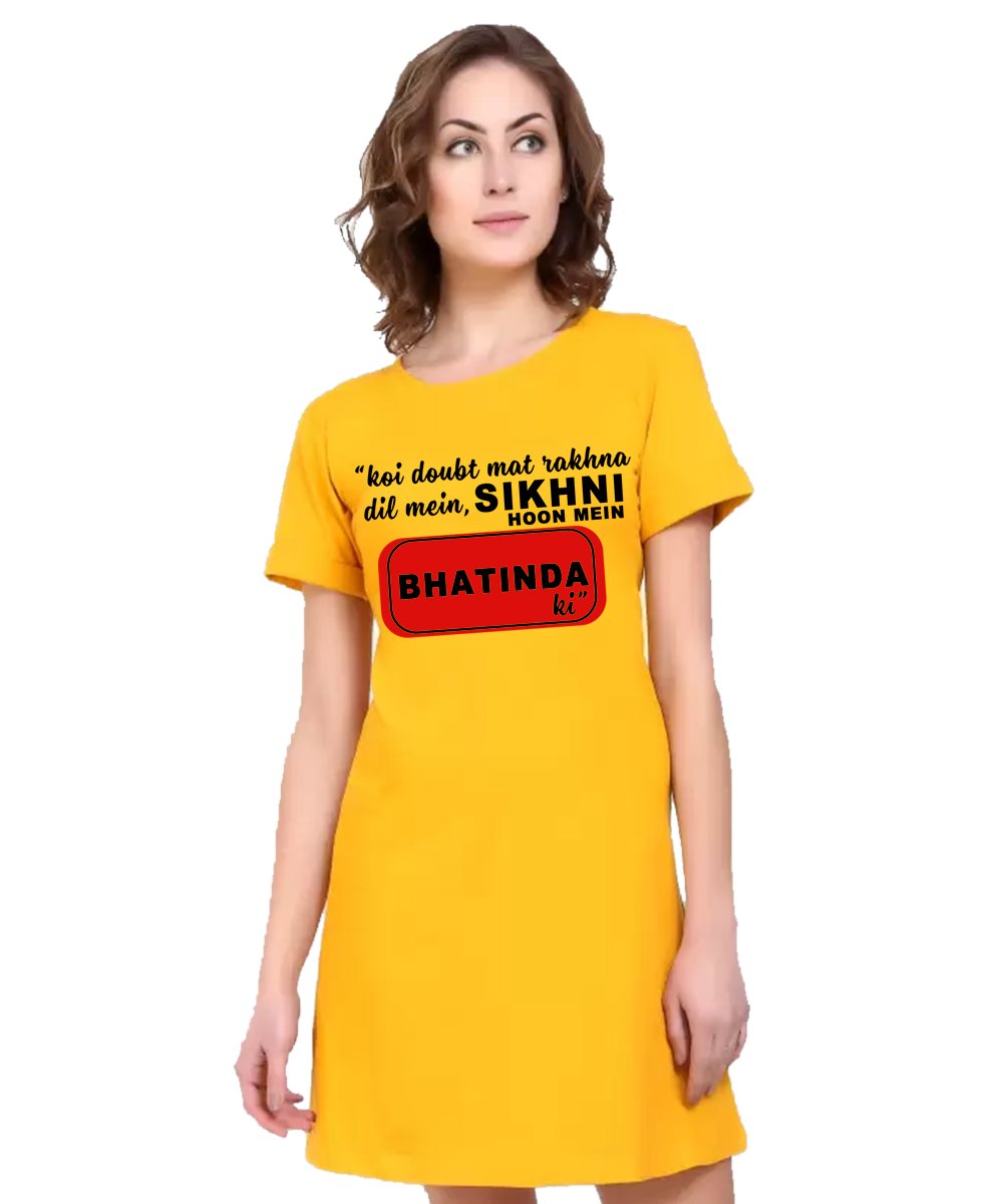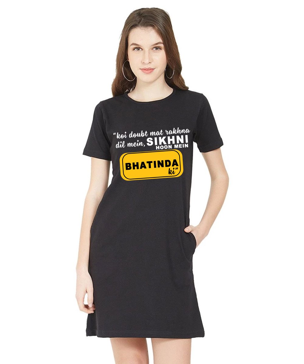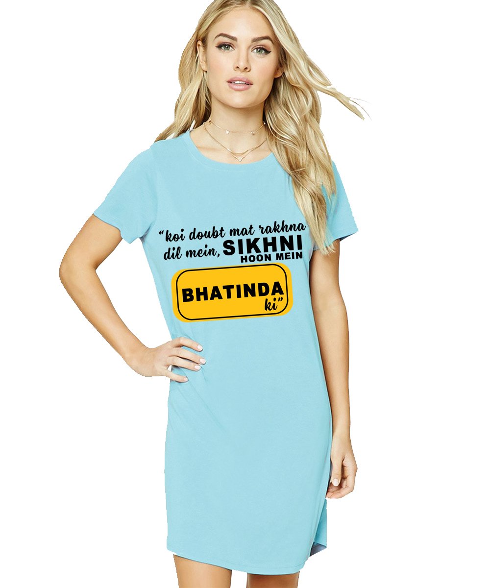 Caseria Women's Cotton Biowash Graphic Printed T-Shirt Dress with side pockets - Sikhni Hoon Bhatinda Ki