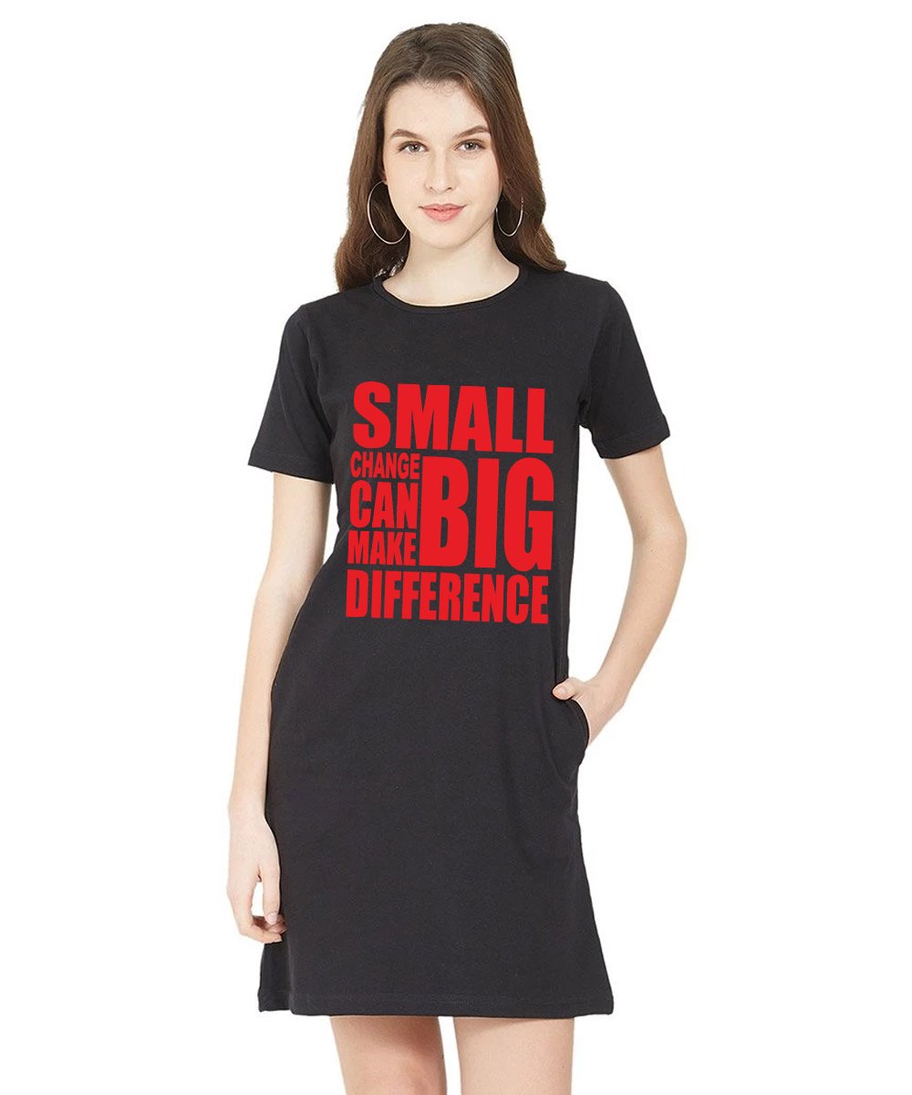 Caseria Women's Cotton Biowash Graphic Printed T-Shirt Dress with side pockets - Small Big Difference