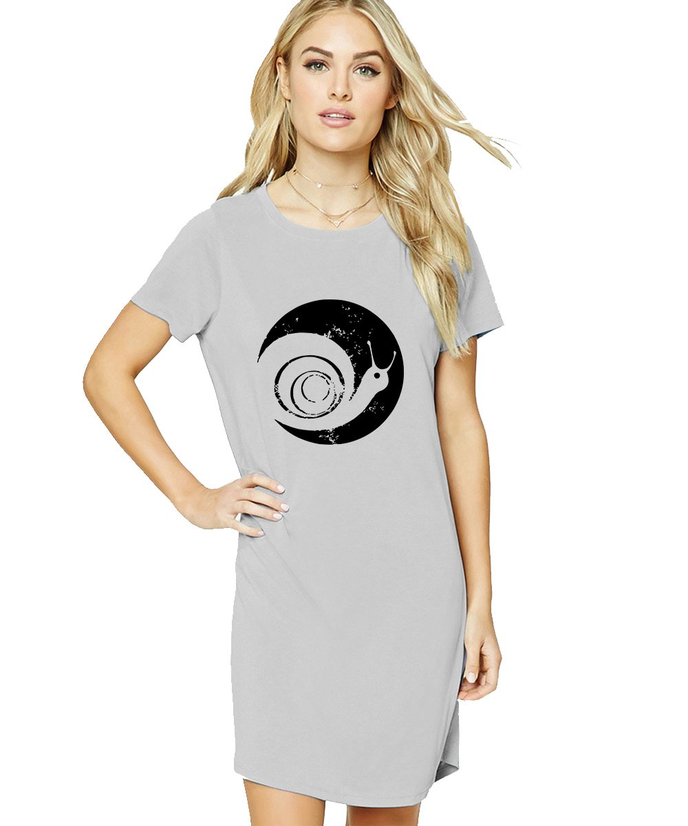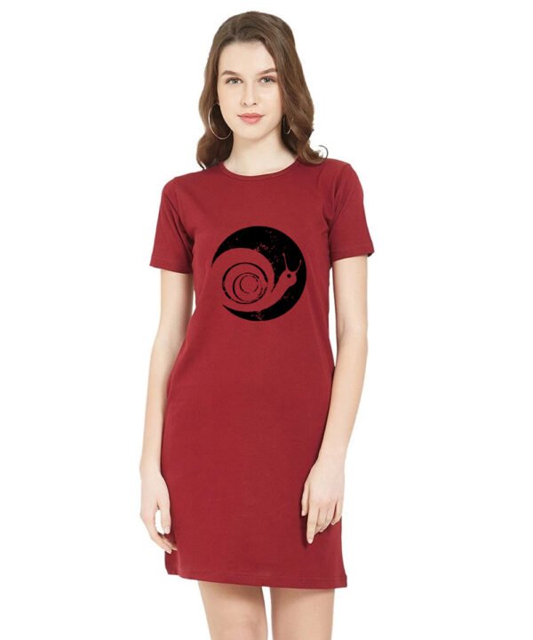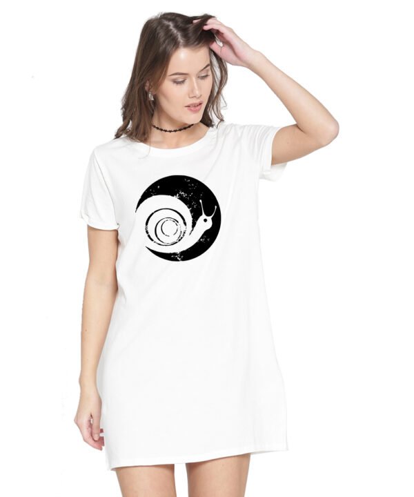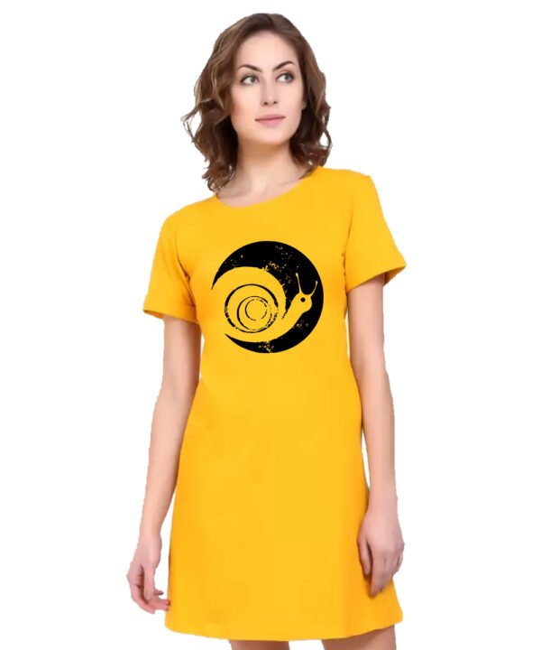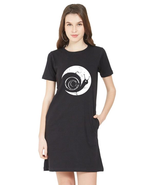 Caseria Women's Cotton Biowash Graphic Printed T-Shirt Dress with side pockets - Snail Round