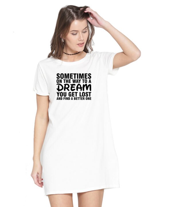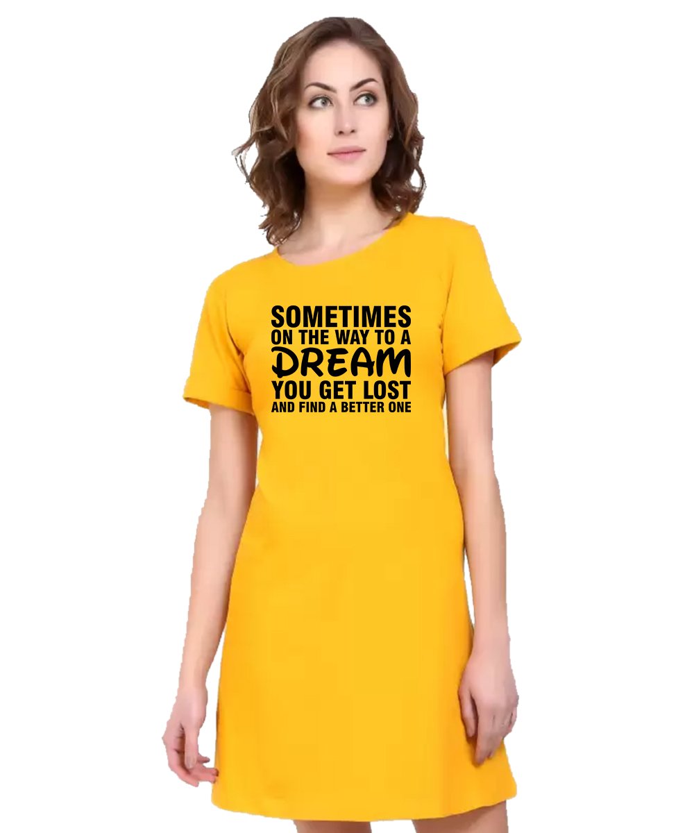 Caseria Women's Cotton Biowash Graphic Printed T-Shirt Dress with side pockets - Sometimes Dream