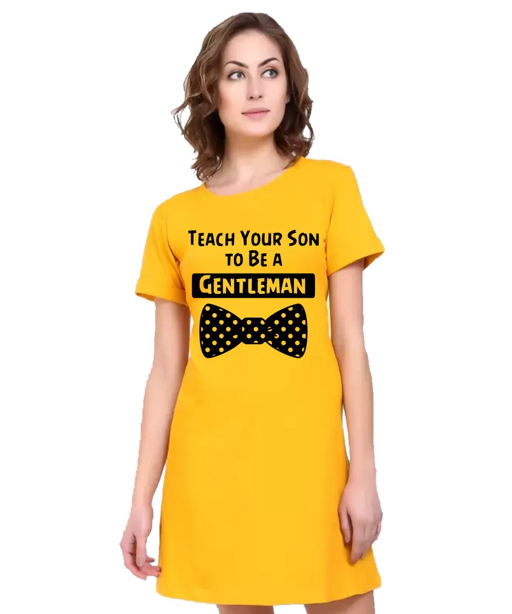 Caseria Women's Cotton Biowash Graphic Printed T-Shirt Dress with side pockets - Son Gentlemen