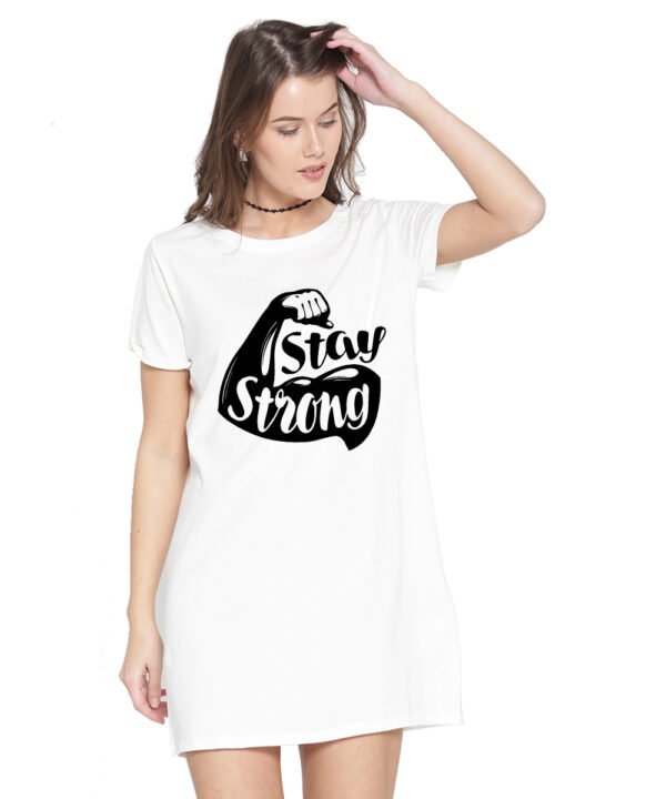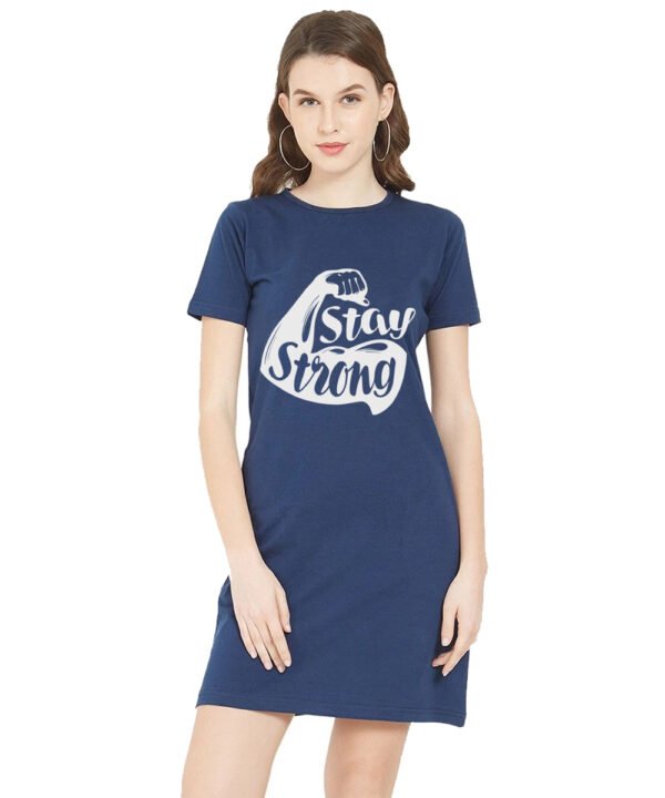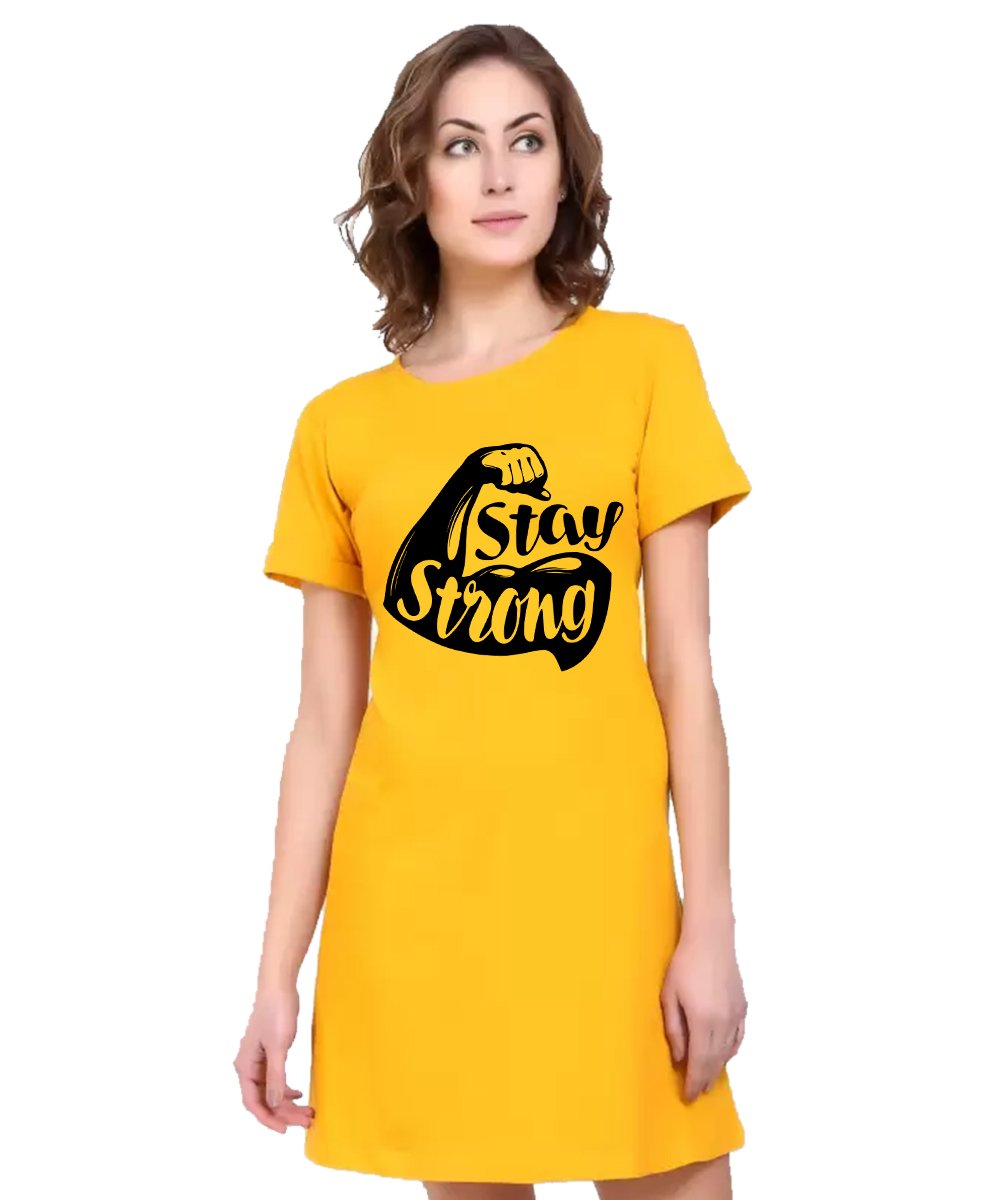 Caseria Women's Cotton Biowash Graphic Printed T-Shirt Dress with side pockets - Stay Strong