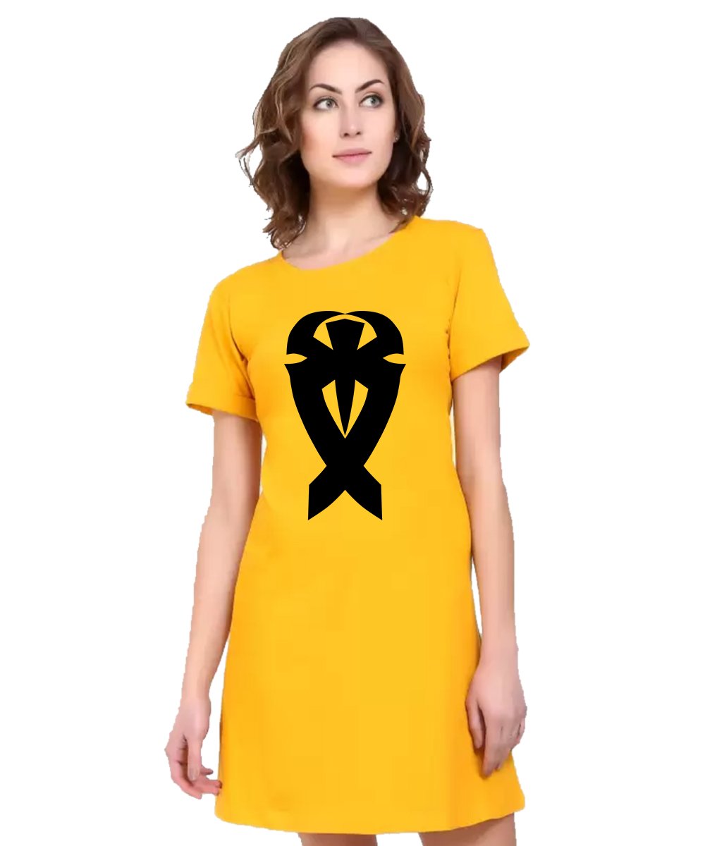 Caseria Women's Cotton Biowash Graphic Printed T-Shirt Dress with side pockets - Strong Sign