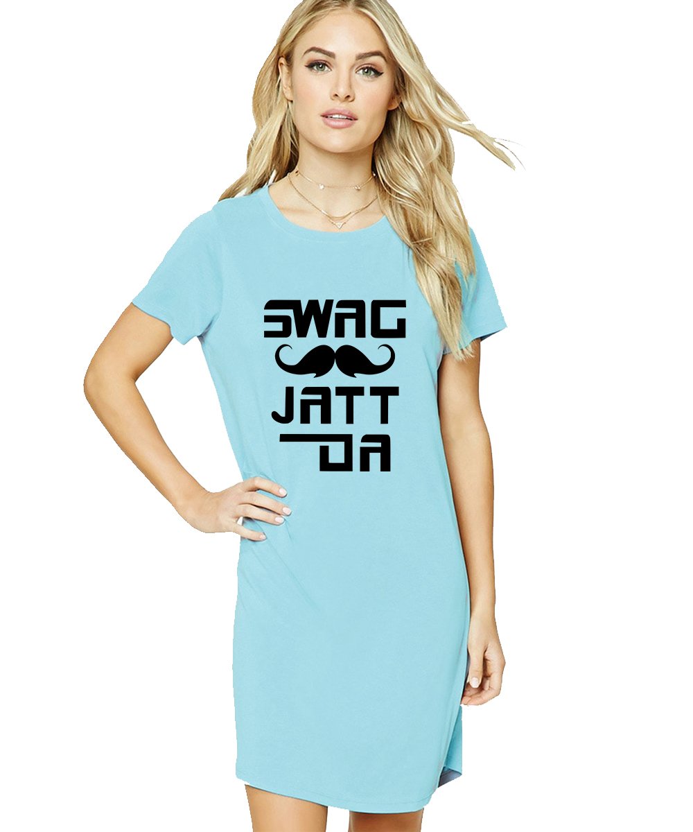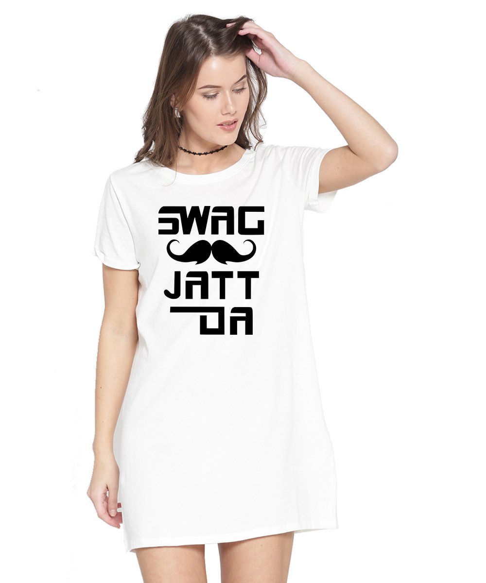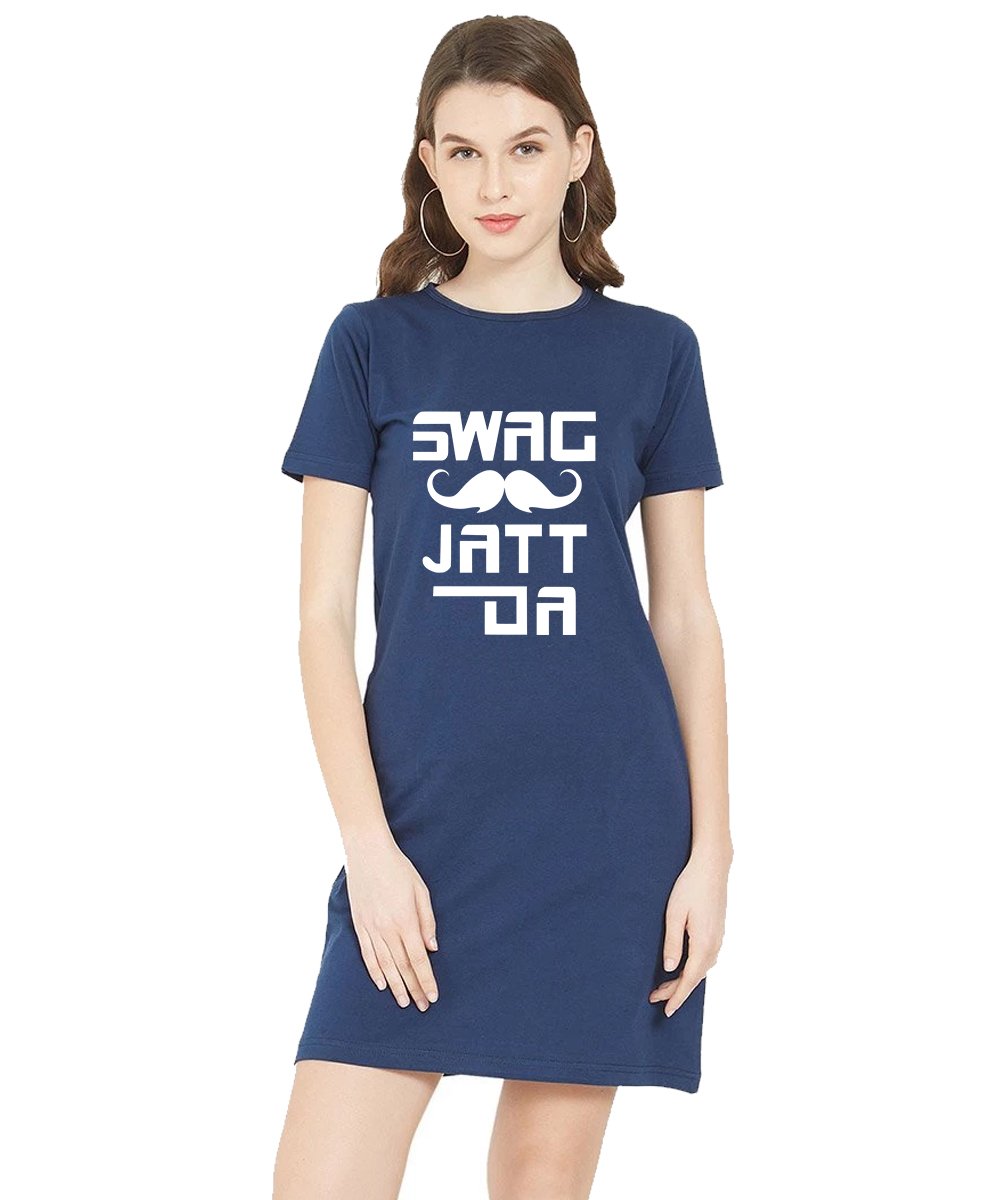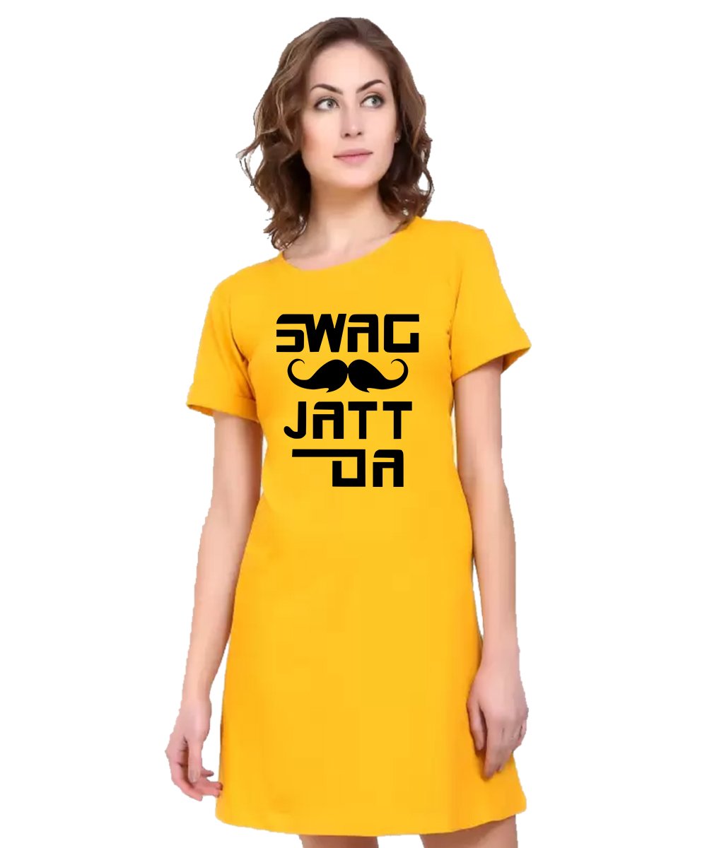 Caseria Women's Cotton Biowash Graphic Printed T-Shirt Dress with side pockets - Swag Jatt Da