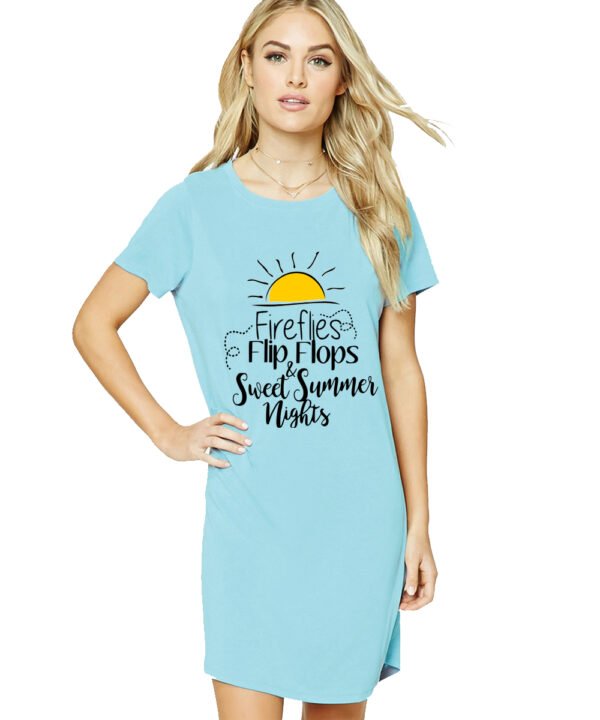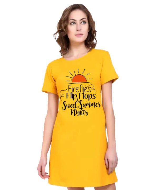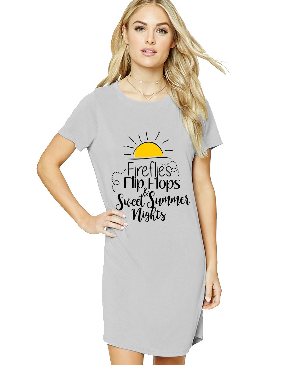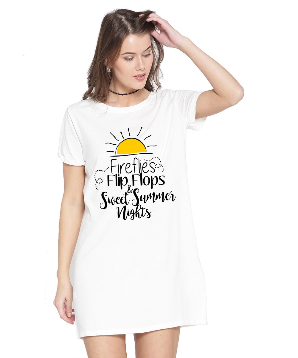 Caseria Women's Cotton Biowash Graphic Printed T-Shirt Dress with side pockets - Sweet Summer Nights
