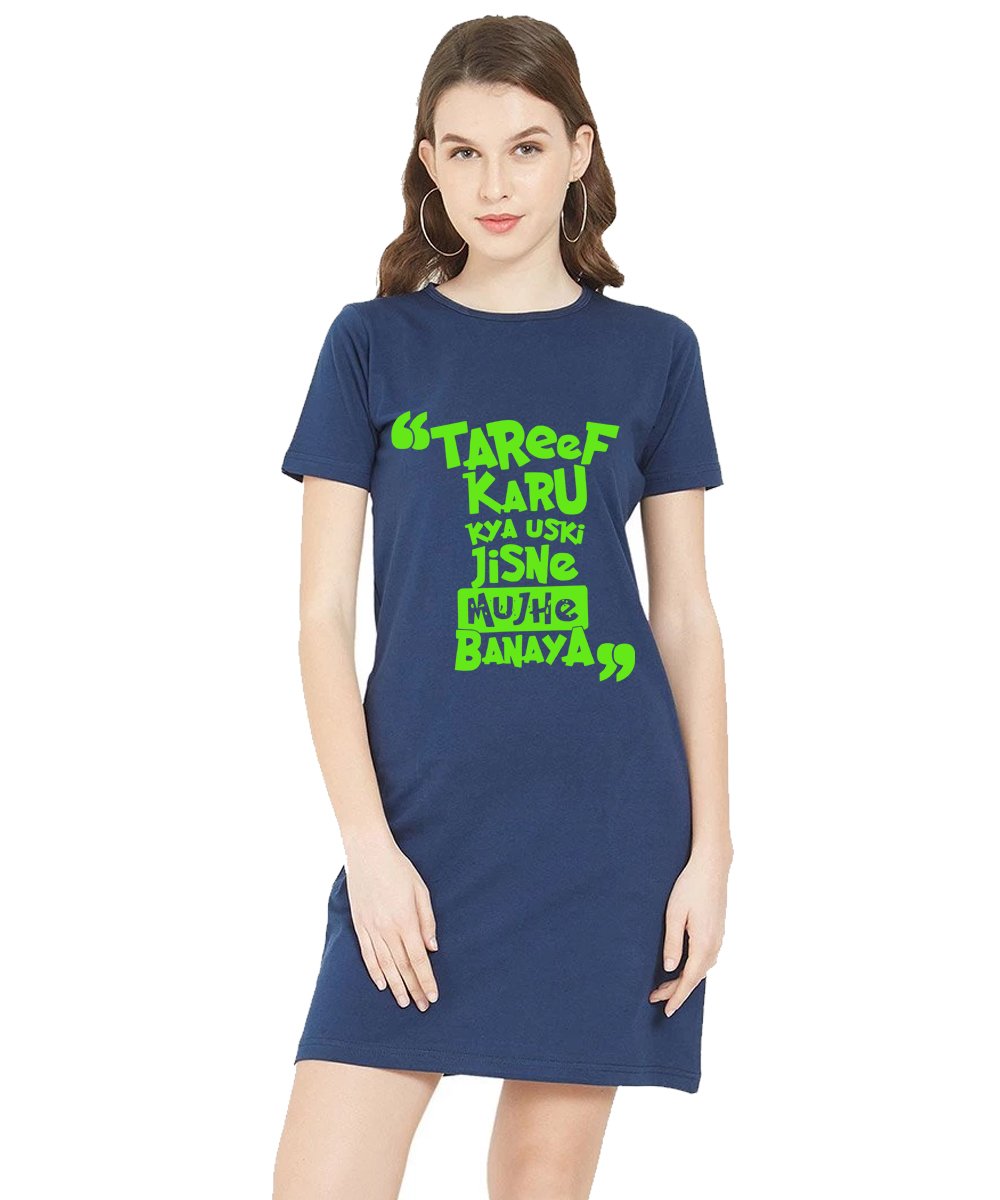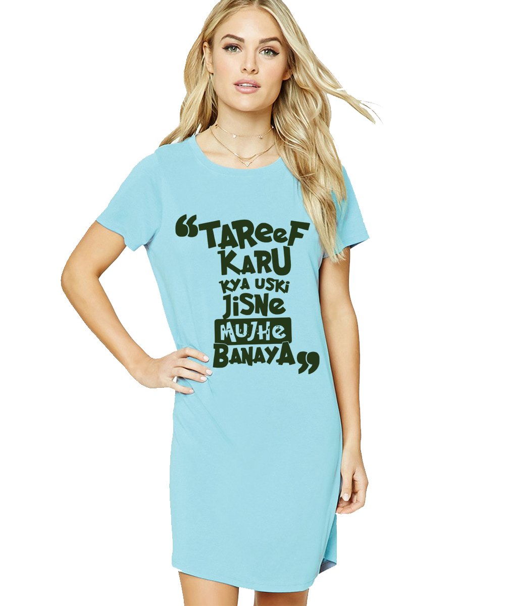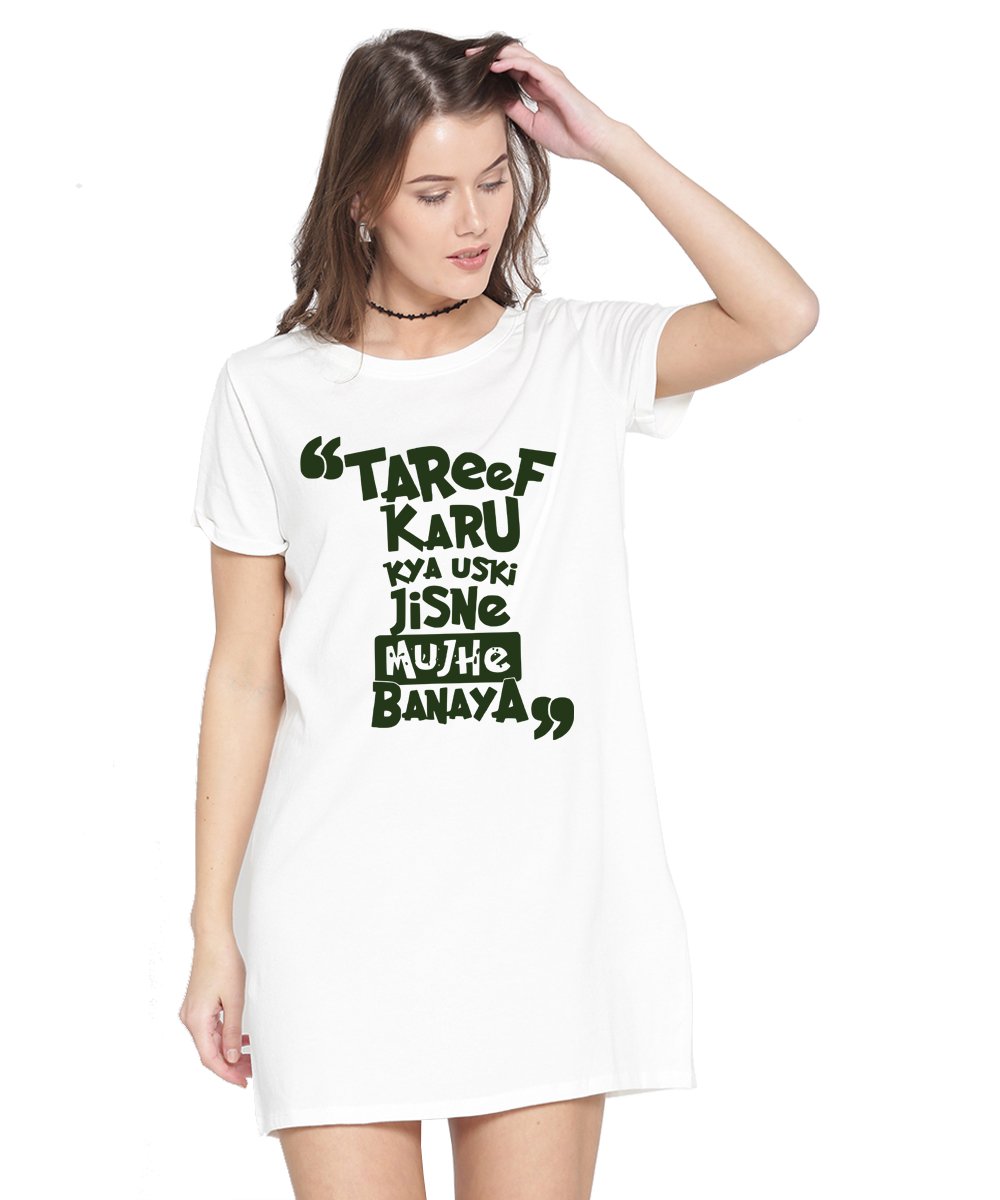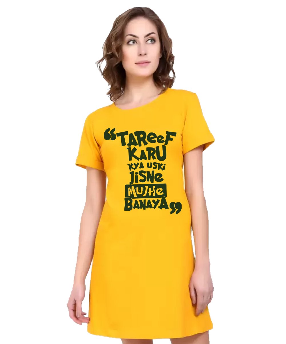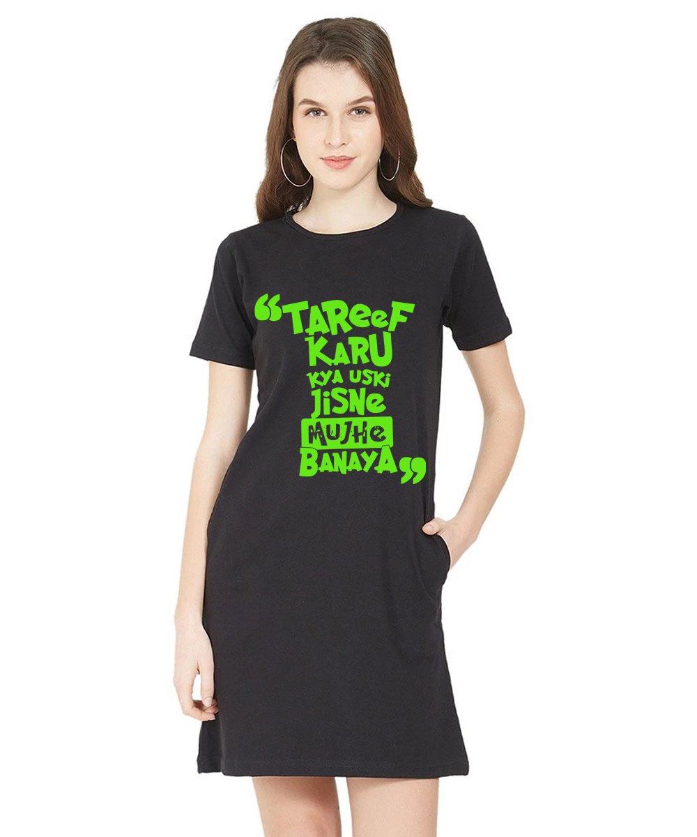 Caseria Women's Cotton Biowash Graphic Printed T-Shirt Dress with side pockets - Tareef Karu Kya