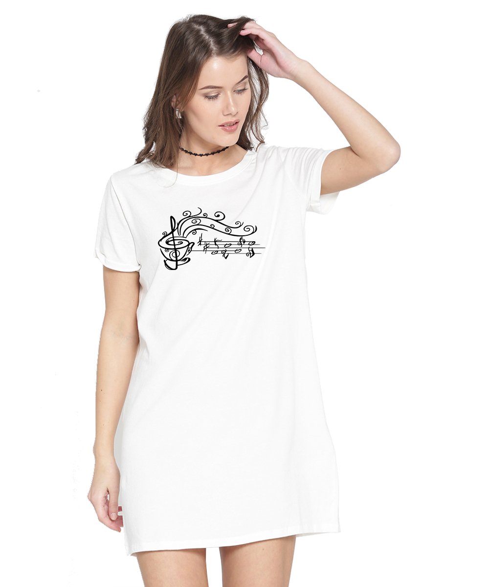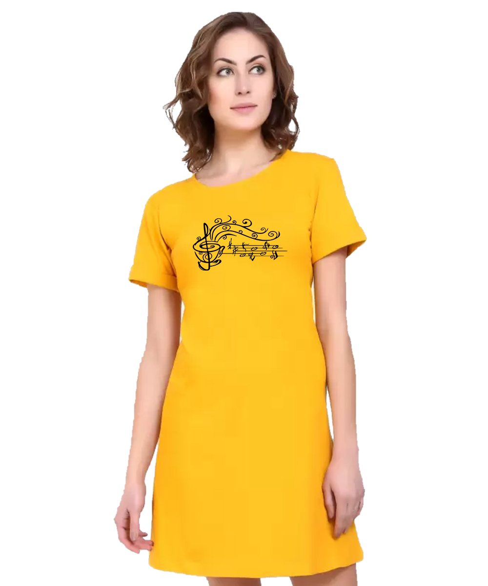 Caseria Women's Cotton Biowash Graphic Printed T-Shirt Dress with side pockets - Tea Music