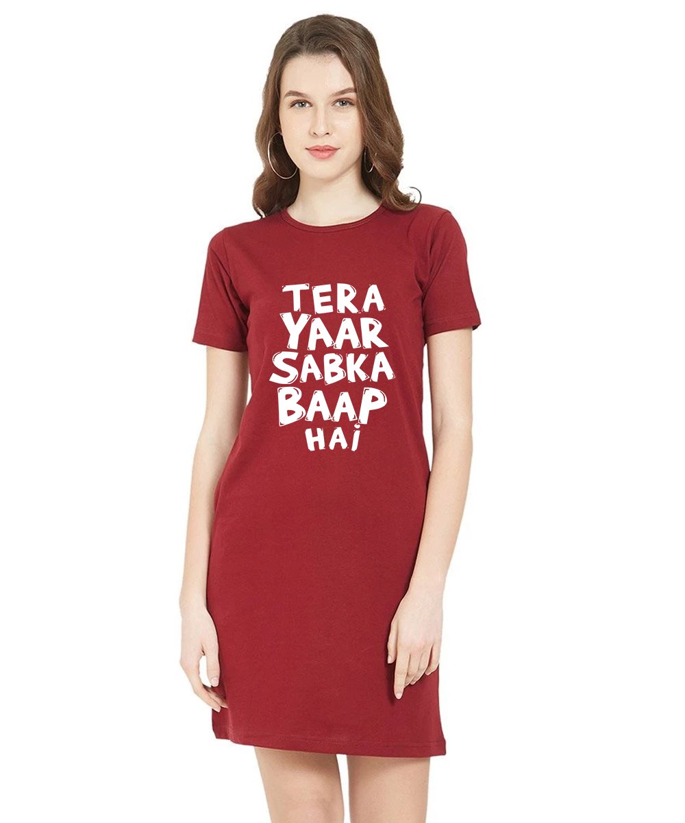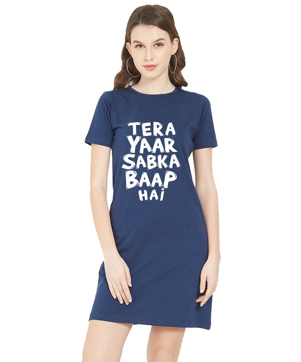 Caseria Women's Cotton Biowash Graphic Printed T-Shirt Dress with side pockets - Tera Yaar Sabka
