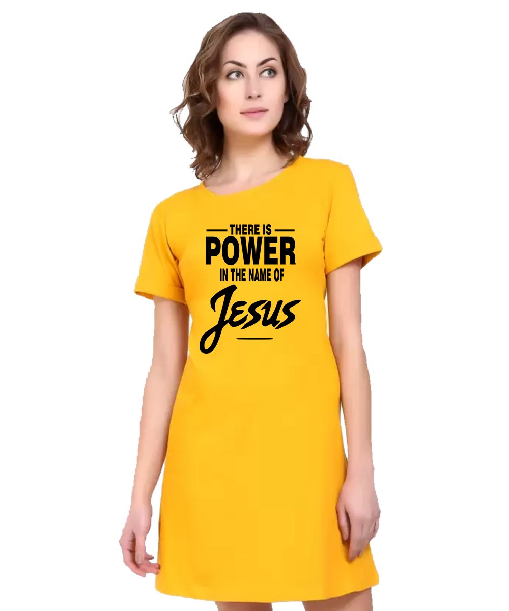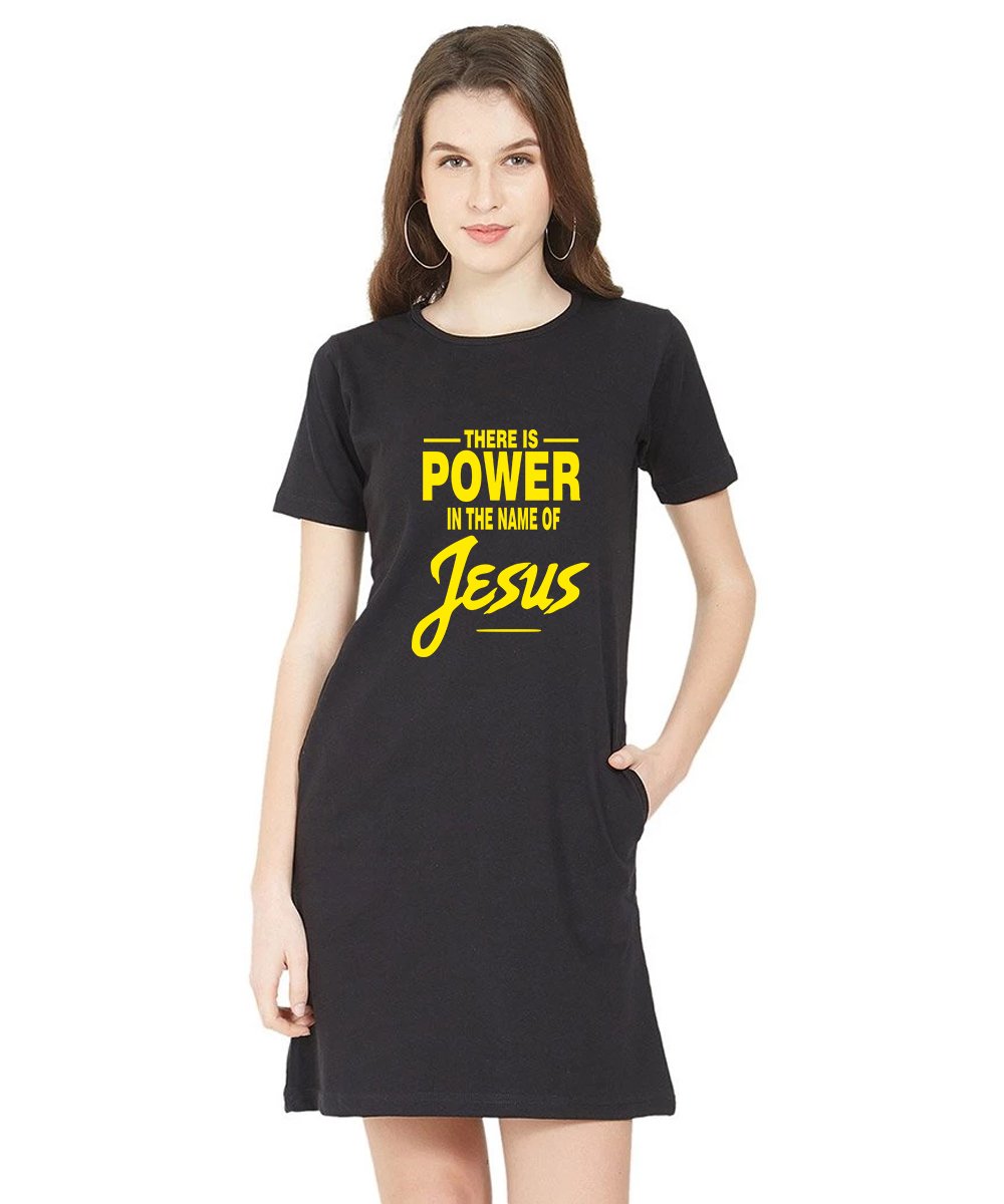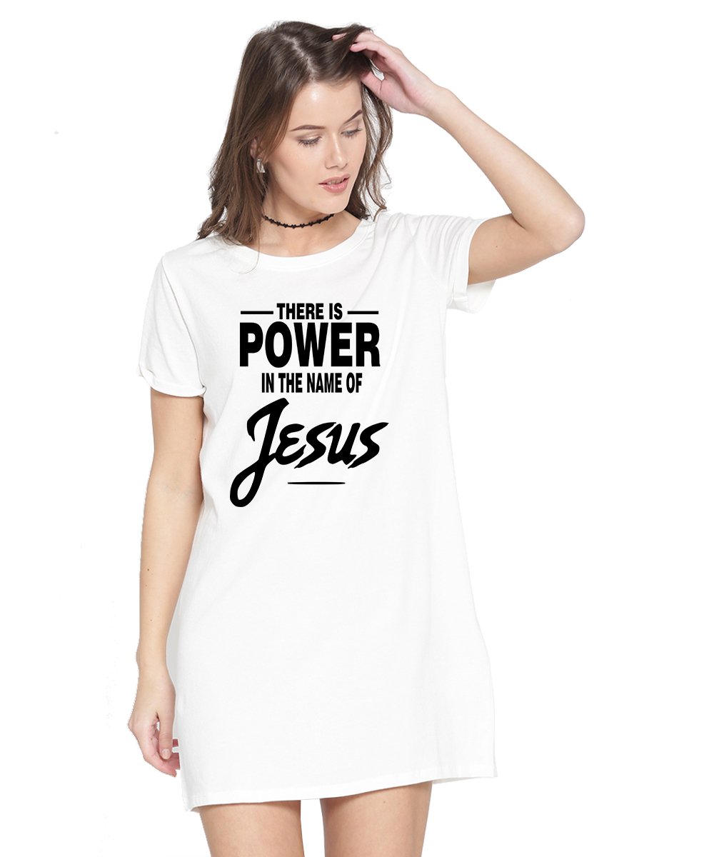 Caseria Women's Cotton Biowash Graphic Printed T-Shirt Dress with side pockets - There Is Power