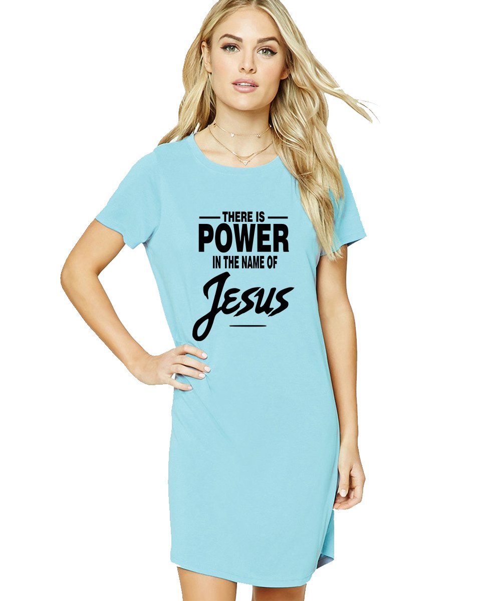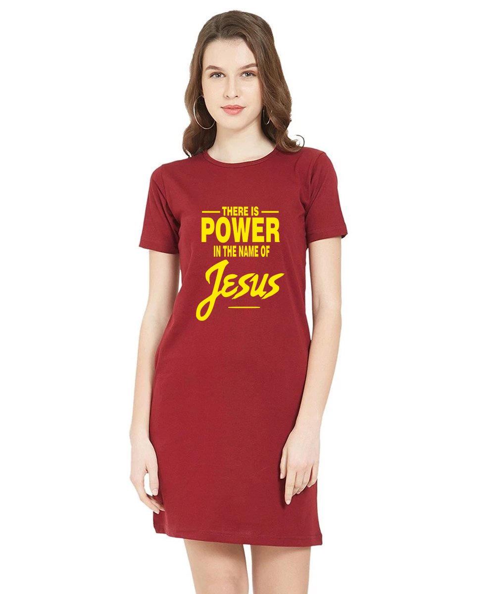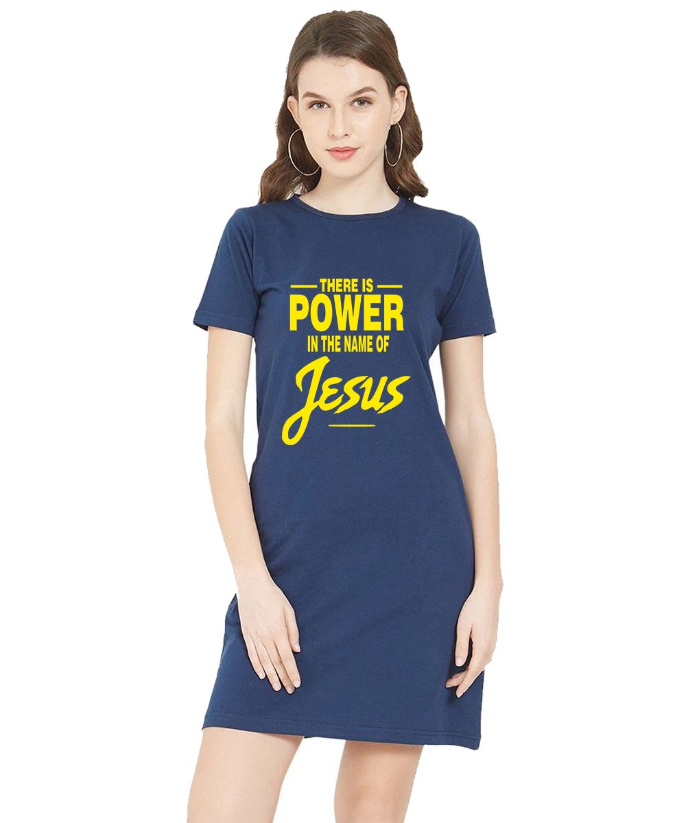 Caseria Women's Cotton Biowash Graphic Printed T-Shirt Dress with side pockets - There Is Power