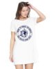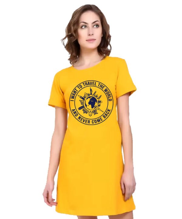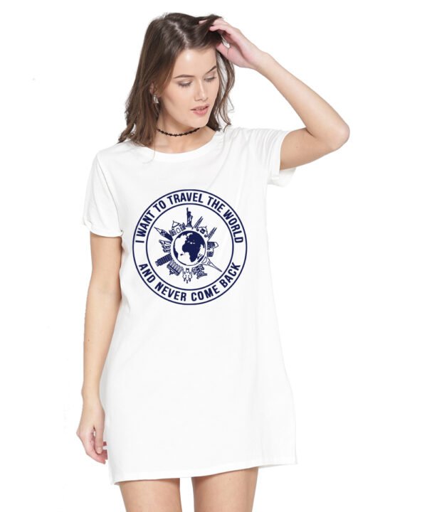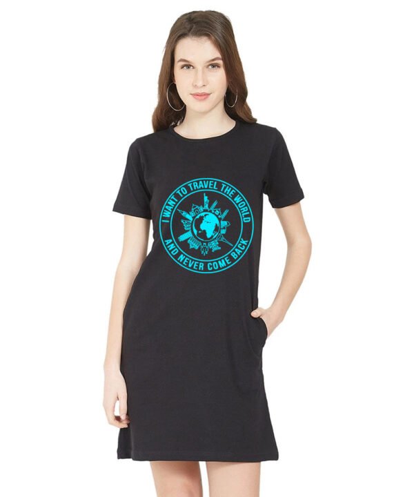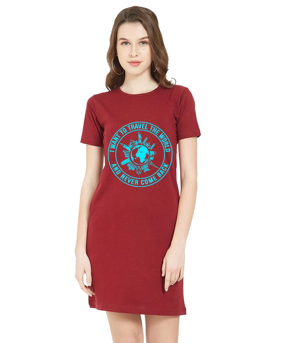 Caseria Women's Cotton Biowash Graphic Printed T-Shirt Dress with side pockets - Travel The World