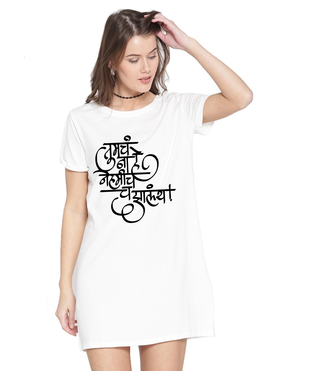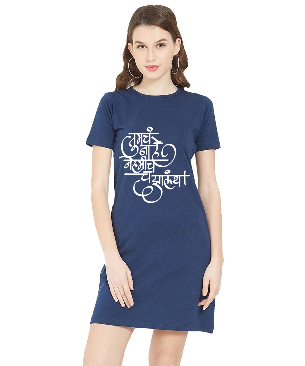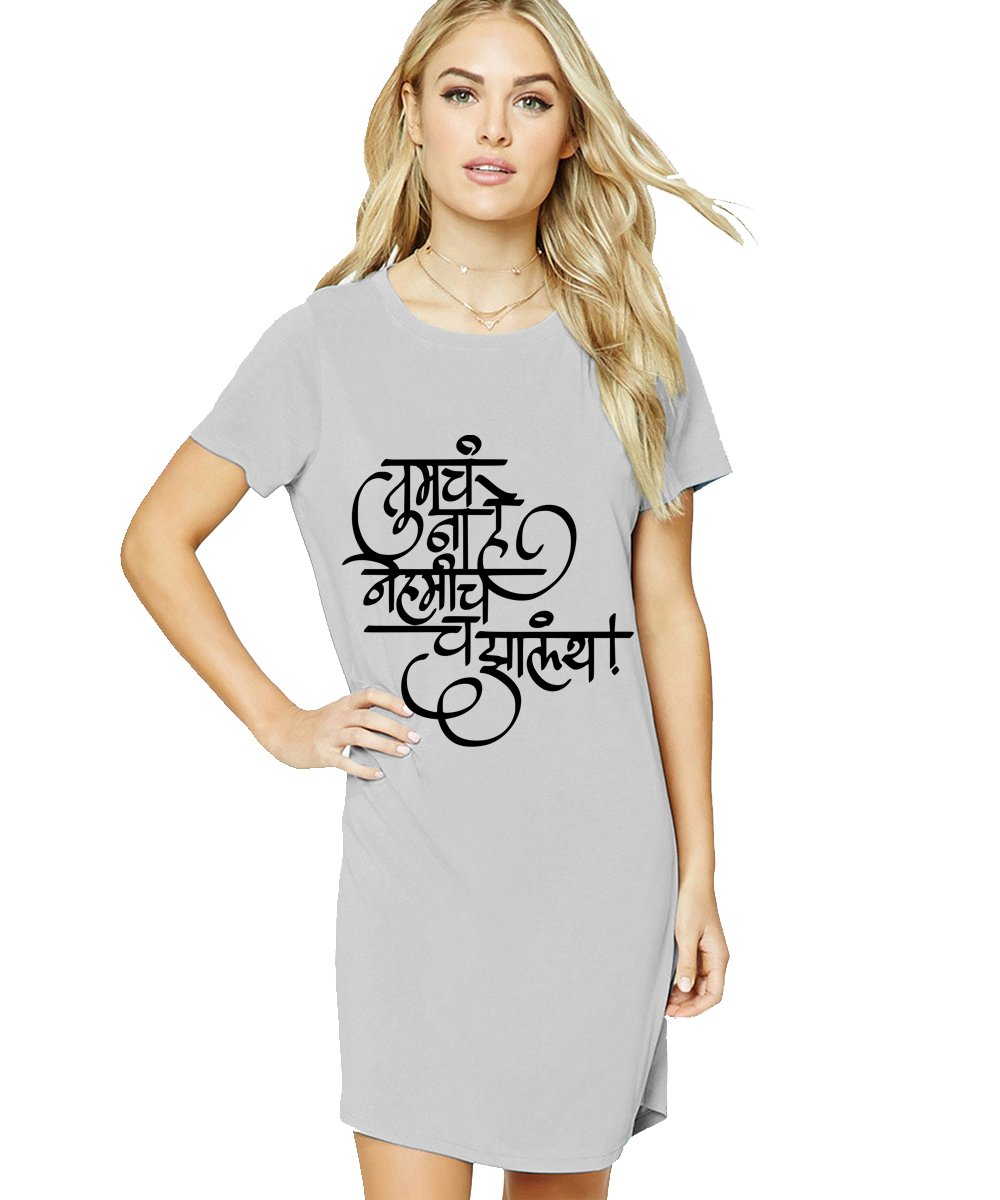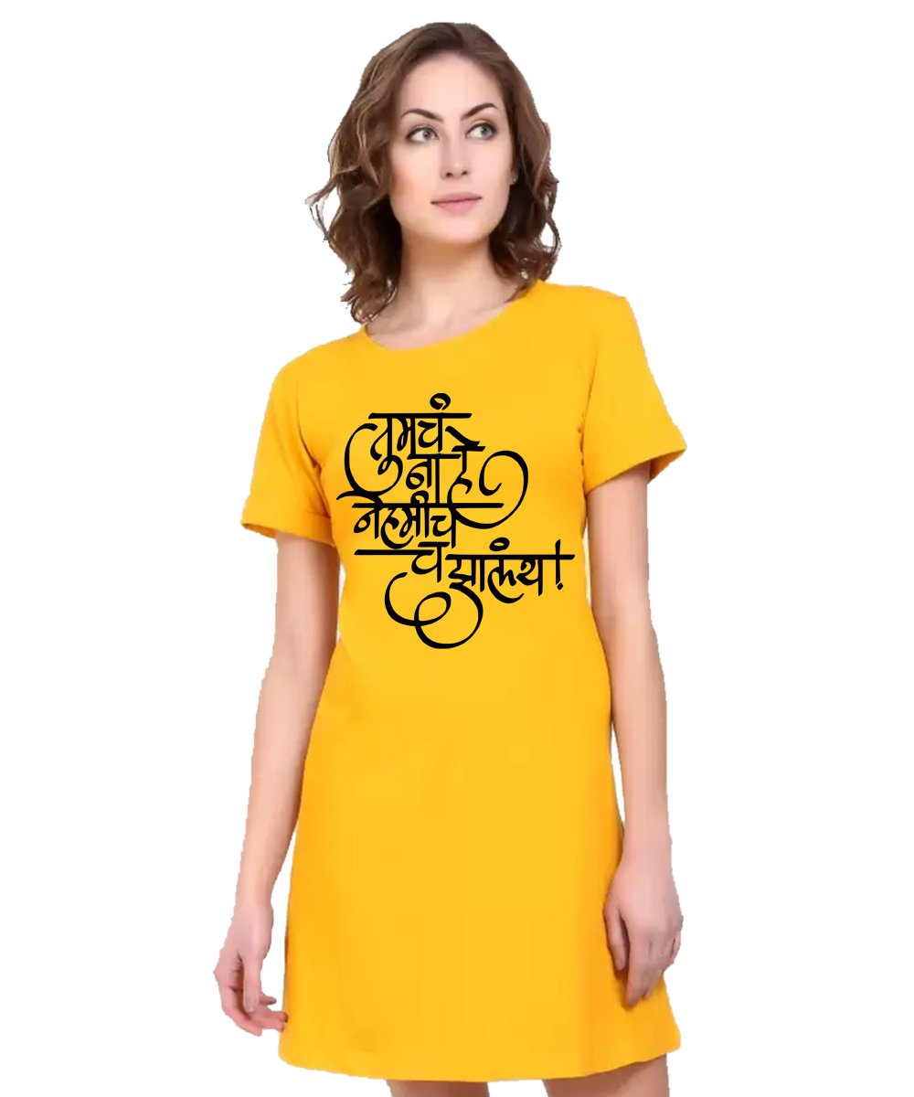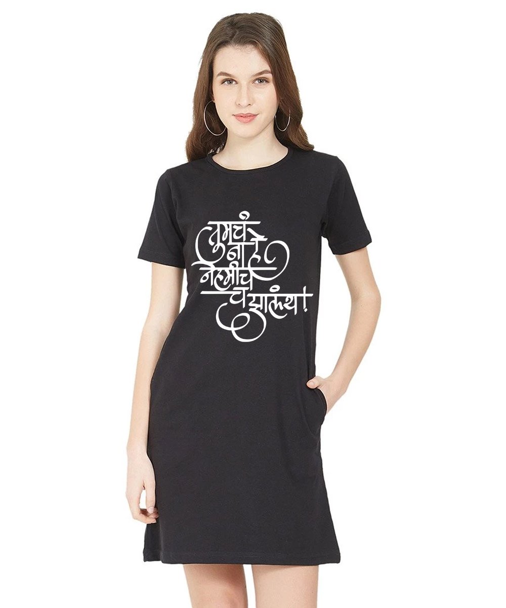 Caseria Women's Cotton Biowash Graphic Printed T-Shirt Dress with side pockets - Tumcha Nehmichach Zalay