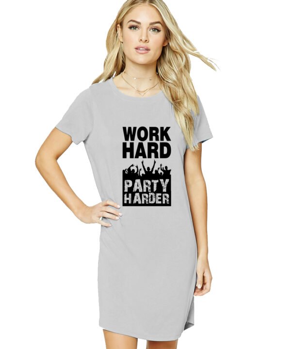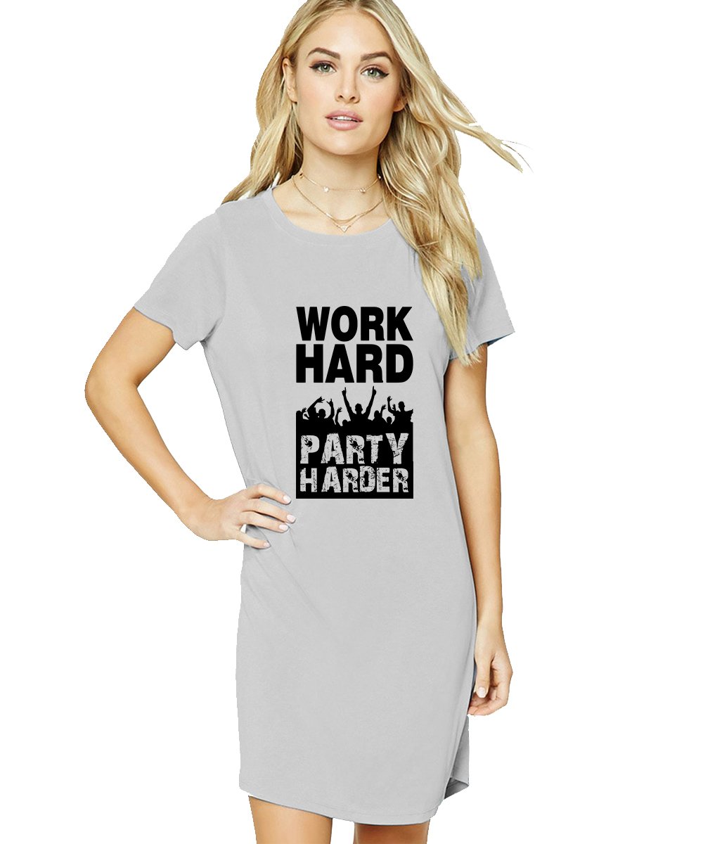 Caseria Women's Cotton Biowash Graphic Printed T-Shirt Dress with side pockets - Work Party Harder