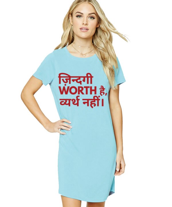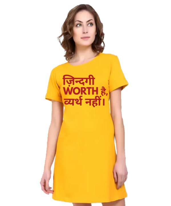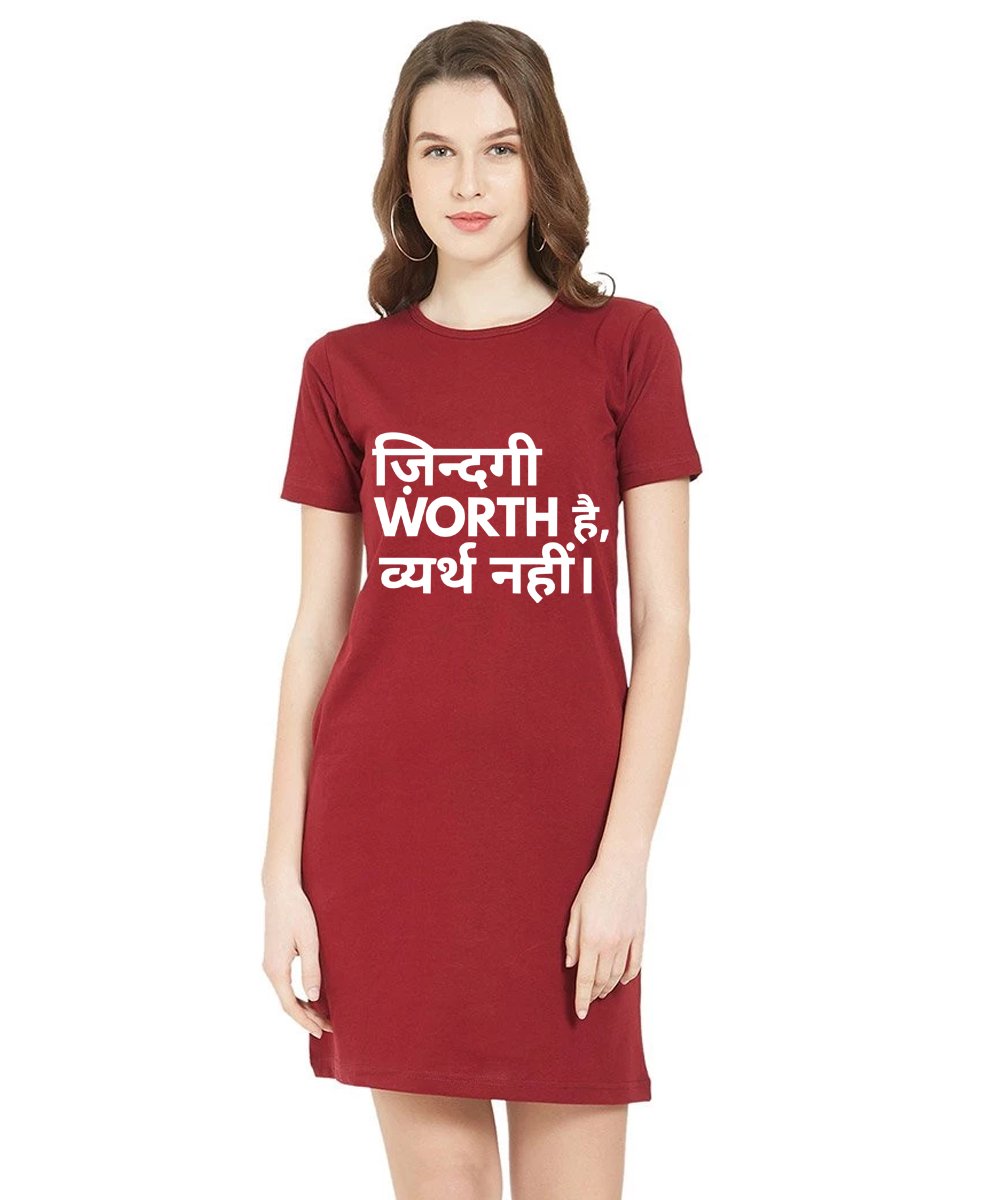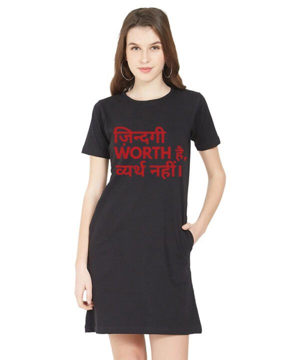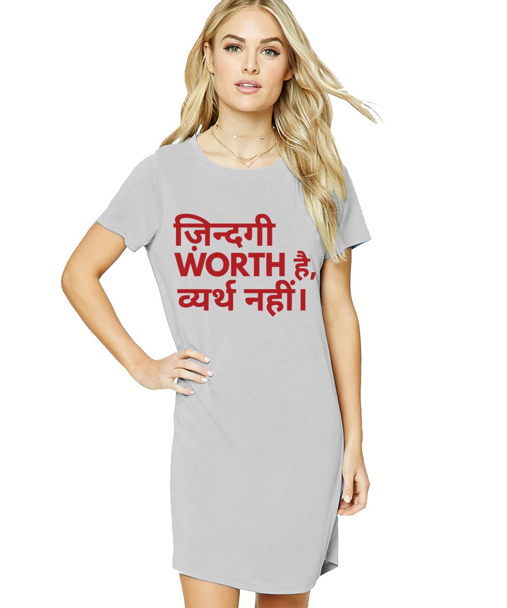Caseria Women's Cotton Biowash Graphic Printed T-Shirt Dress with side pockets - Zindagi Worth