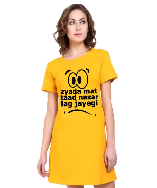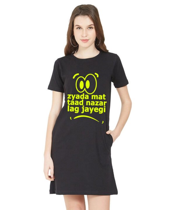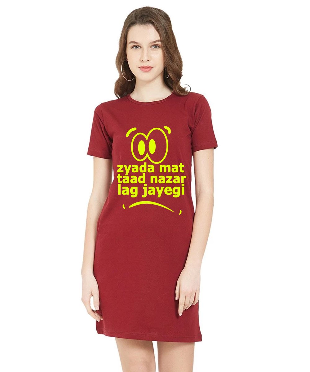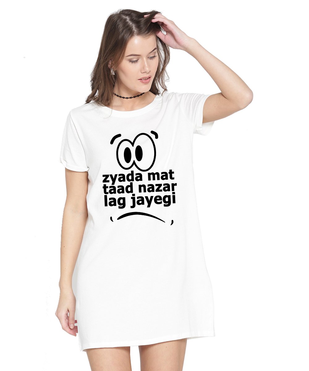 Caseria Women's Cotton Biowash Graphic Printed T-Shirt Dress with side pockets - Zyada Mat Taad