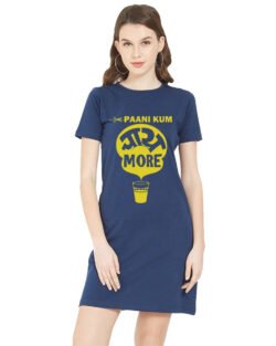 Caseria Women’s Cotton Biowash Graphic Printed T-Shirt Dress with side pockets – Paani Kum Chai More