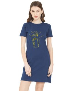 Caseria Women’s Cotton Biowash Graphic Printed T-Shirt Dress with side pockets – Music In Blood