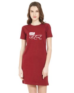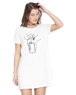 Caseria Women’s Cotton Biowash Graphic Printed T-Shirt Dress with side pockets – Katee Jahar
