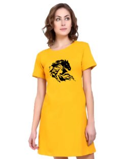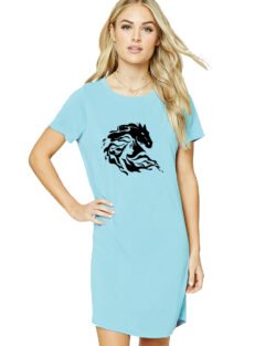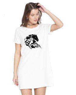 Caseria Women’s Cotton Biowash Graphic Printed T-Shirt Dress with side pockets – Horse Snow